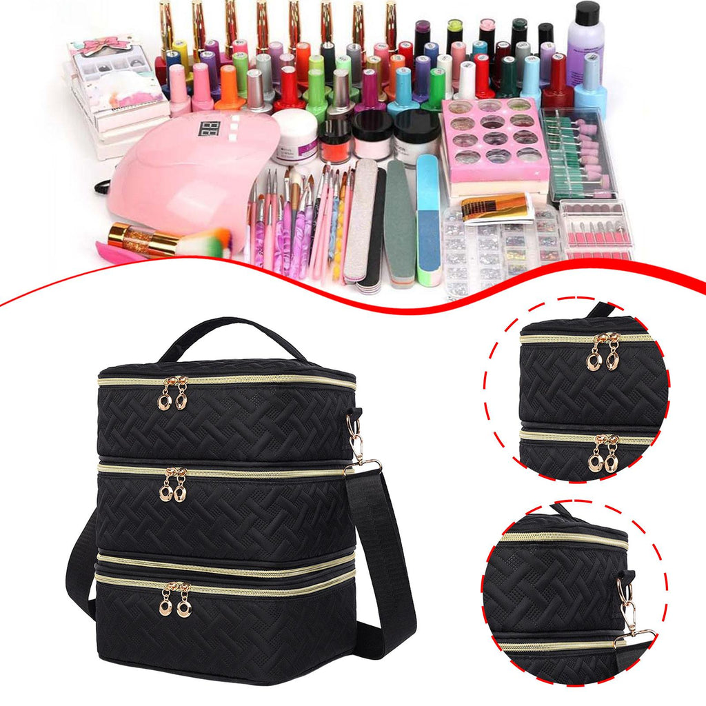 【Polyester Material】: Cosmetic Bag for Women is made of polyester material. This storage solution ensures durability while maintaining its lightweight characteristics. It is suitable for professional manicurists on the goes or personal use at home