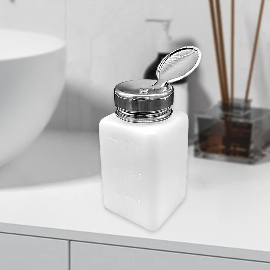 Maxbell Push Down Liquid Dispenser Premium Pump Bottle for Nail Polish Remover White 180 ml