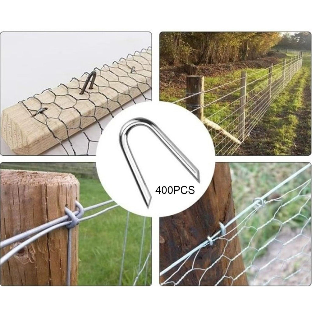 Maxbell U Shaped Fasteners Staples Nails for Chain Link Fencing Wood Livestock Fence 400Pcs