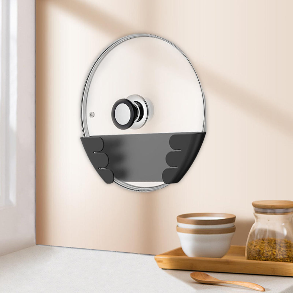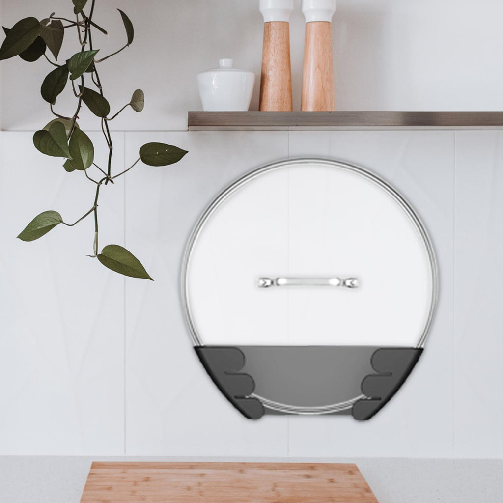 Wall Mount Pot Lid Hanger Portable Pan Storage Rack for Plates Board Kitchen Black