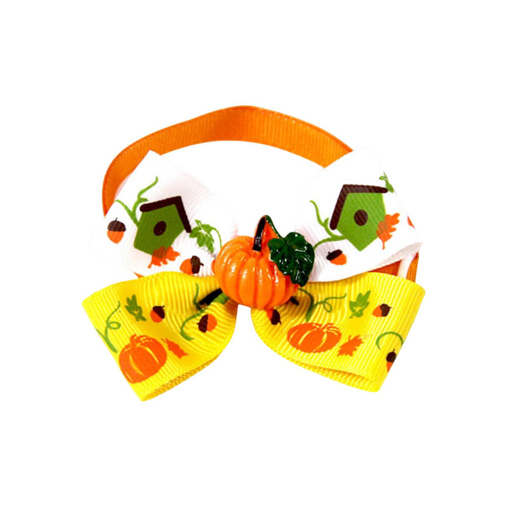 Maxbell 6xFall Halloween Pet Bow Tie Puppy Cat Collar Necklace for Kitten Small Dog Rabbit style D