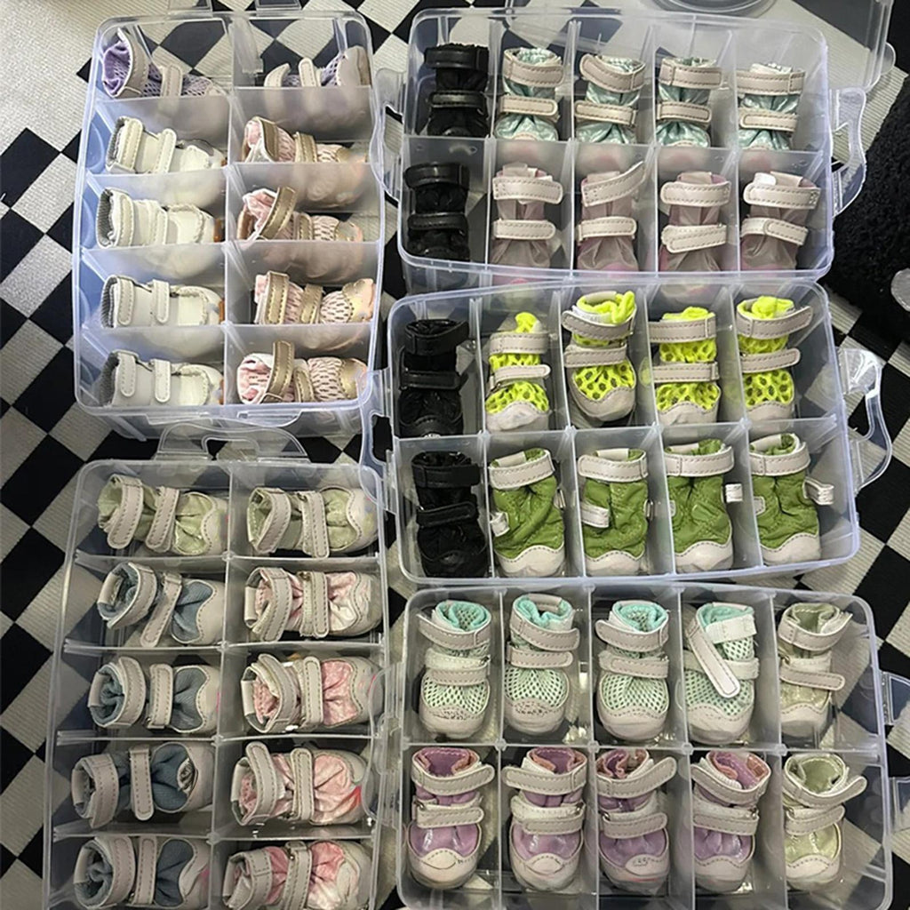 [Transparent Visibility]: The allows for quick identification of contents, so you can effortlessly find the right pair of shoes for your furry friend at a glance