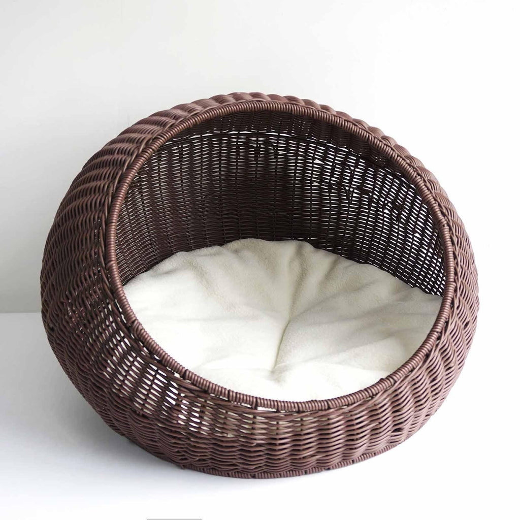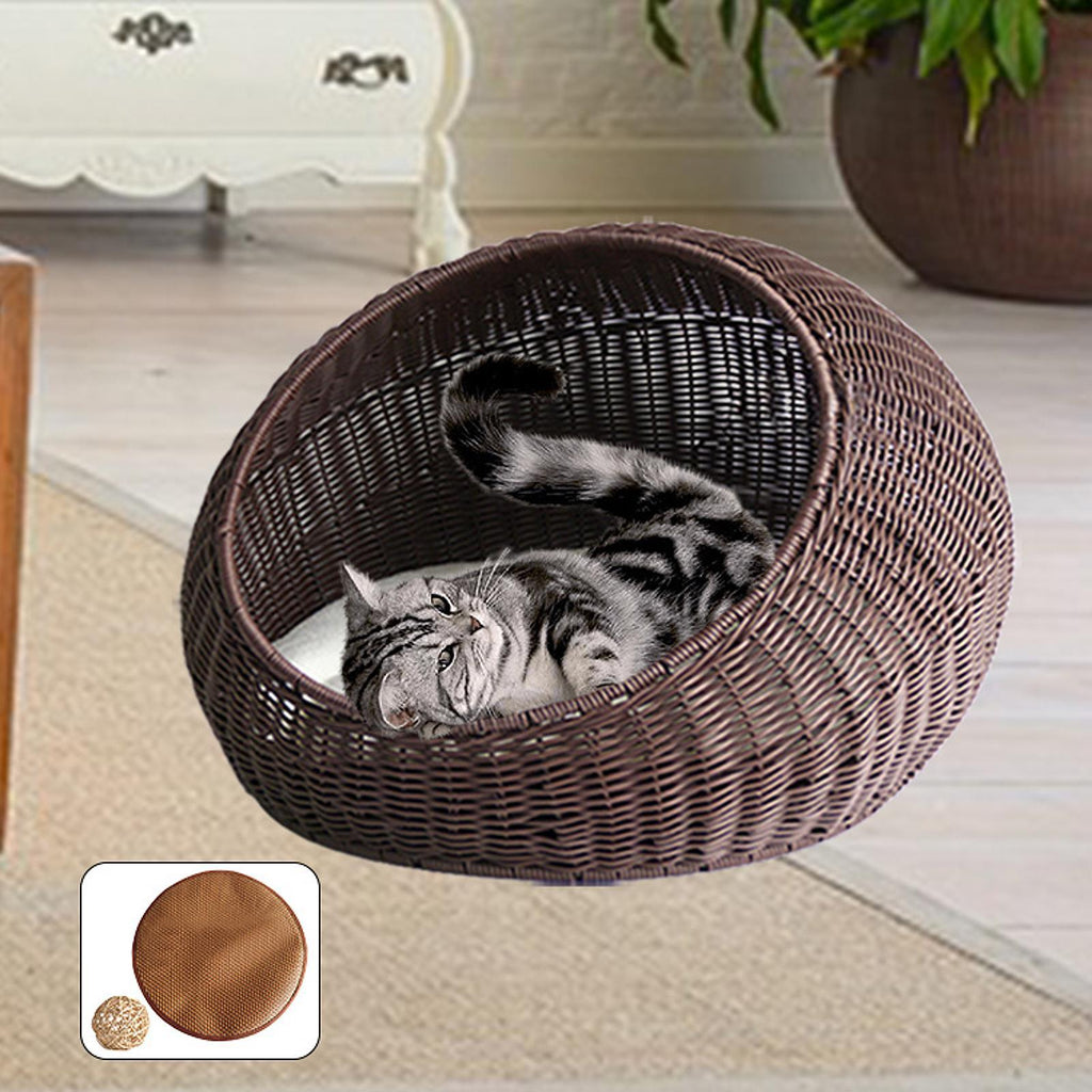 Cat Basket Bed Imitation Rattan Lounge Bed Ventilated Handmade Woven Cat Bed dark brown