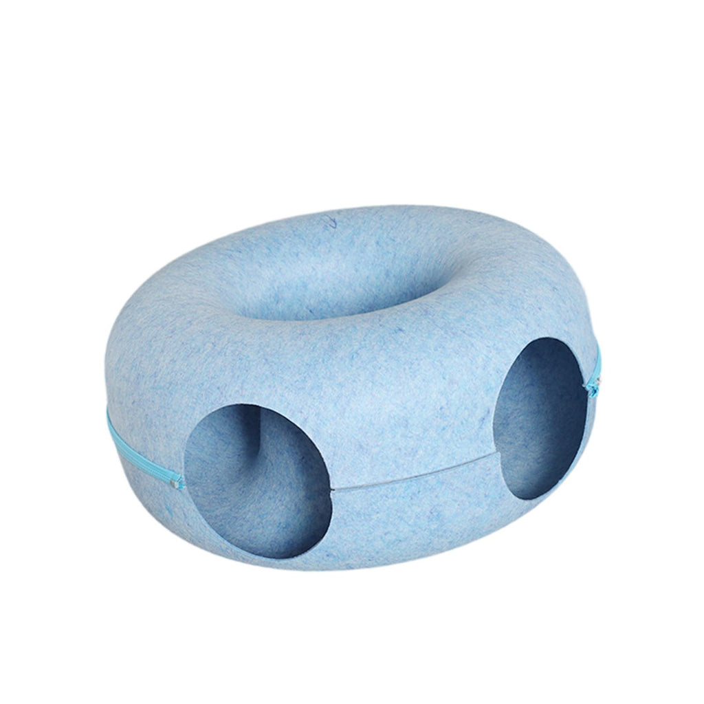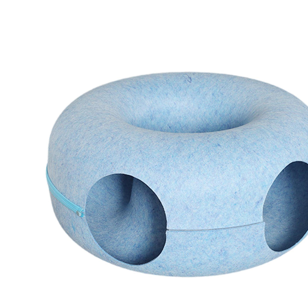 Cat Bed Play Tunnel Round Zip to Detachable Scratching Playing Hut for Bunny Blue