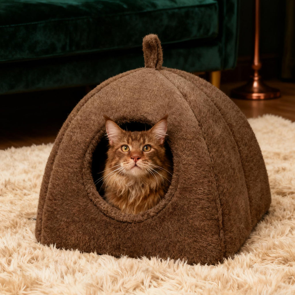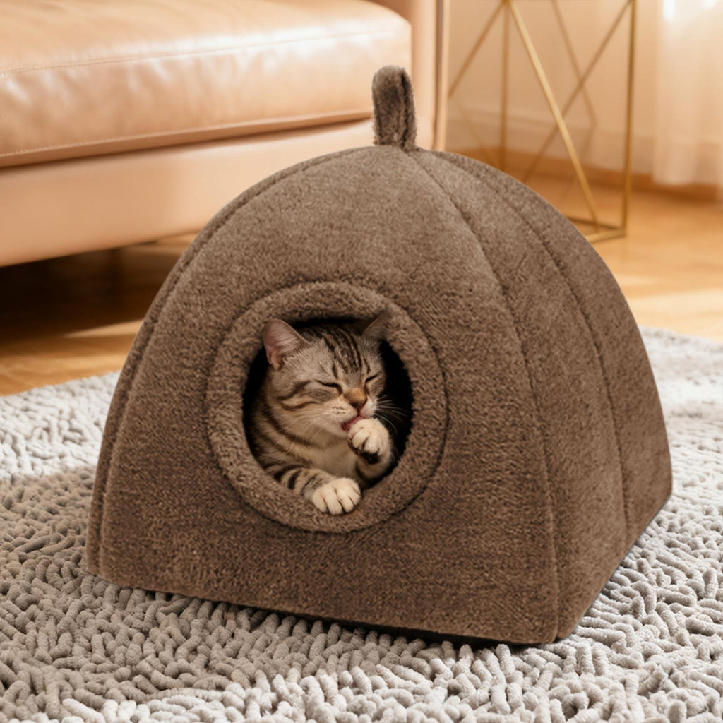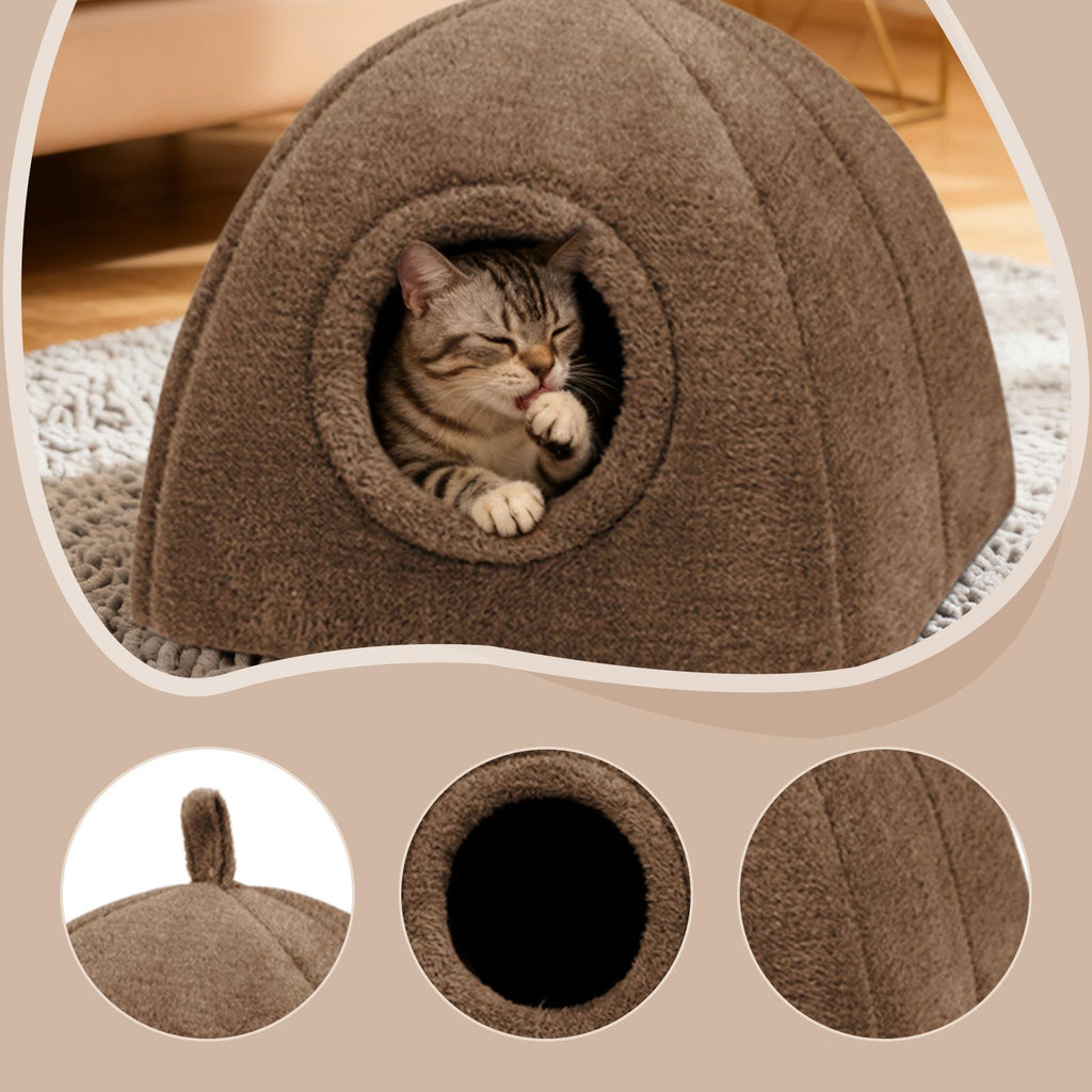 Cat Bed Winter Washable Soft Cat Cave House for Small Pets Puppy Indoor Cats Brown