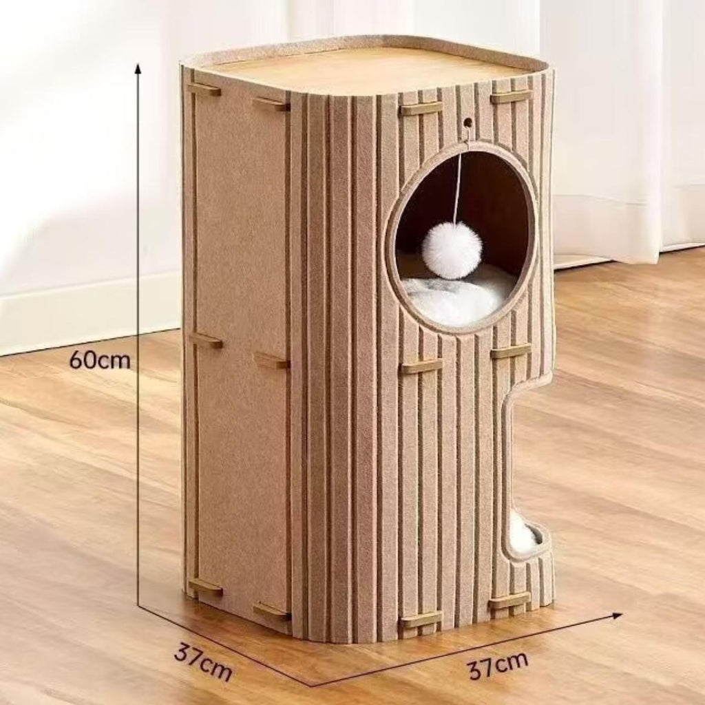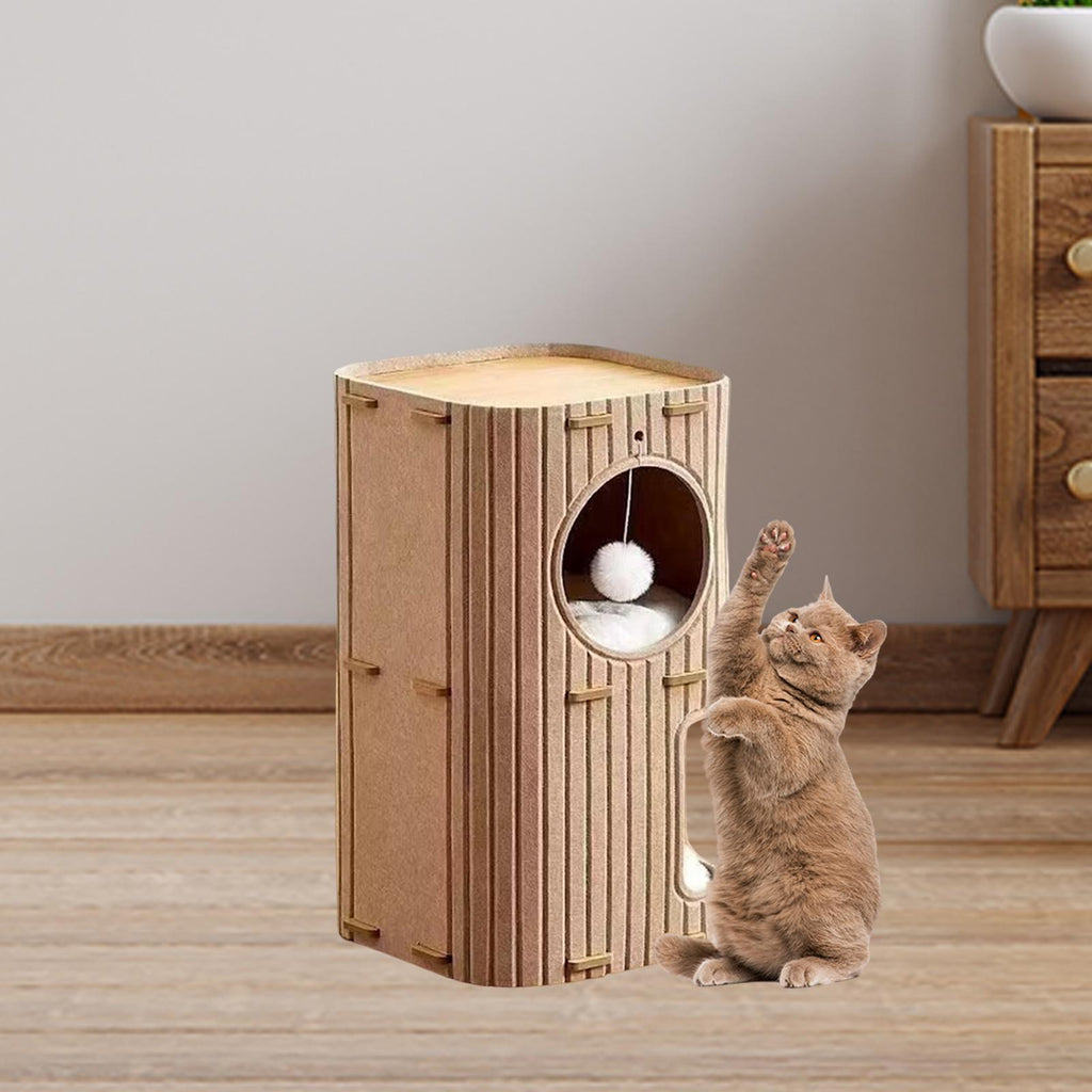 【Double Layer Comfort and Versatility】: This double layer felt cat house offers a great blend of resting and play, providing your feline friend with a designated space for napping and activities