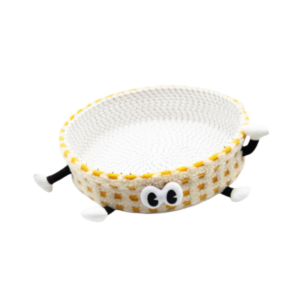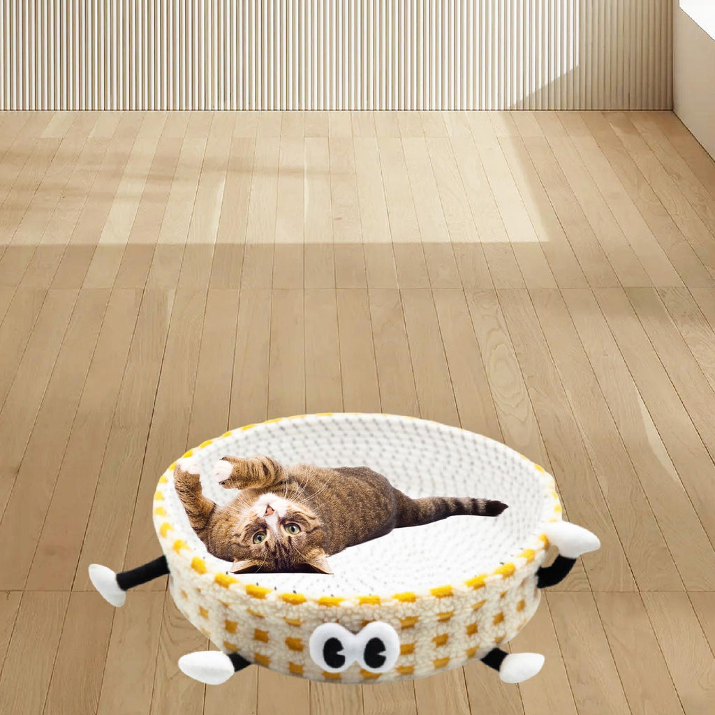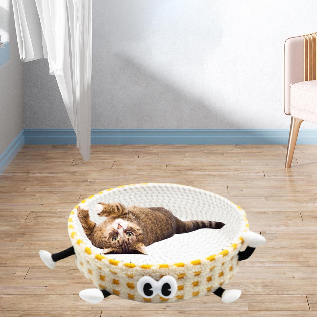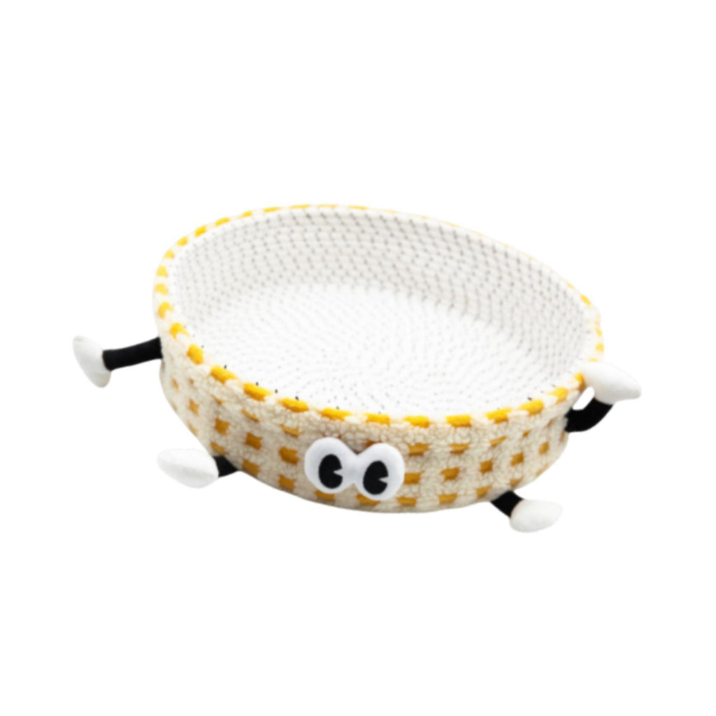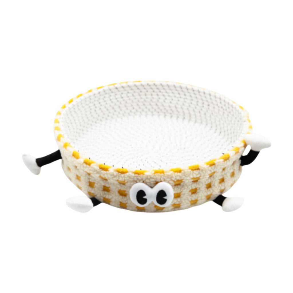 Cotton Rope Woven Cat Bed Basket Cute Pet Bed for Small Dogs Small Pets Rest Yellow