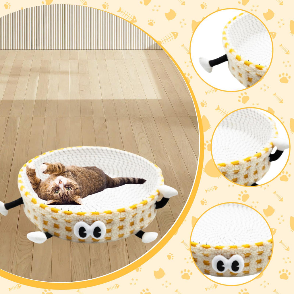 - 【Breathable Material】: Woven Cat Bed is made from quality cotton rope, this cat bed is sturdy, wear resistant, and highly breathable—keeping your pet cool in summer and warm in winter