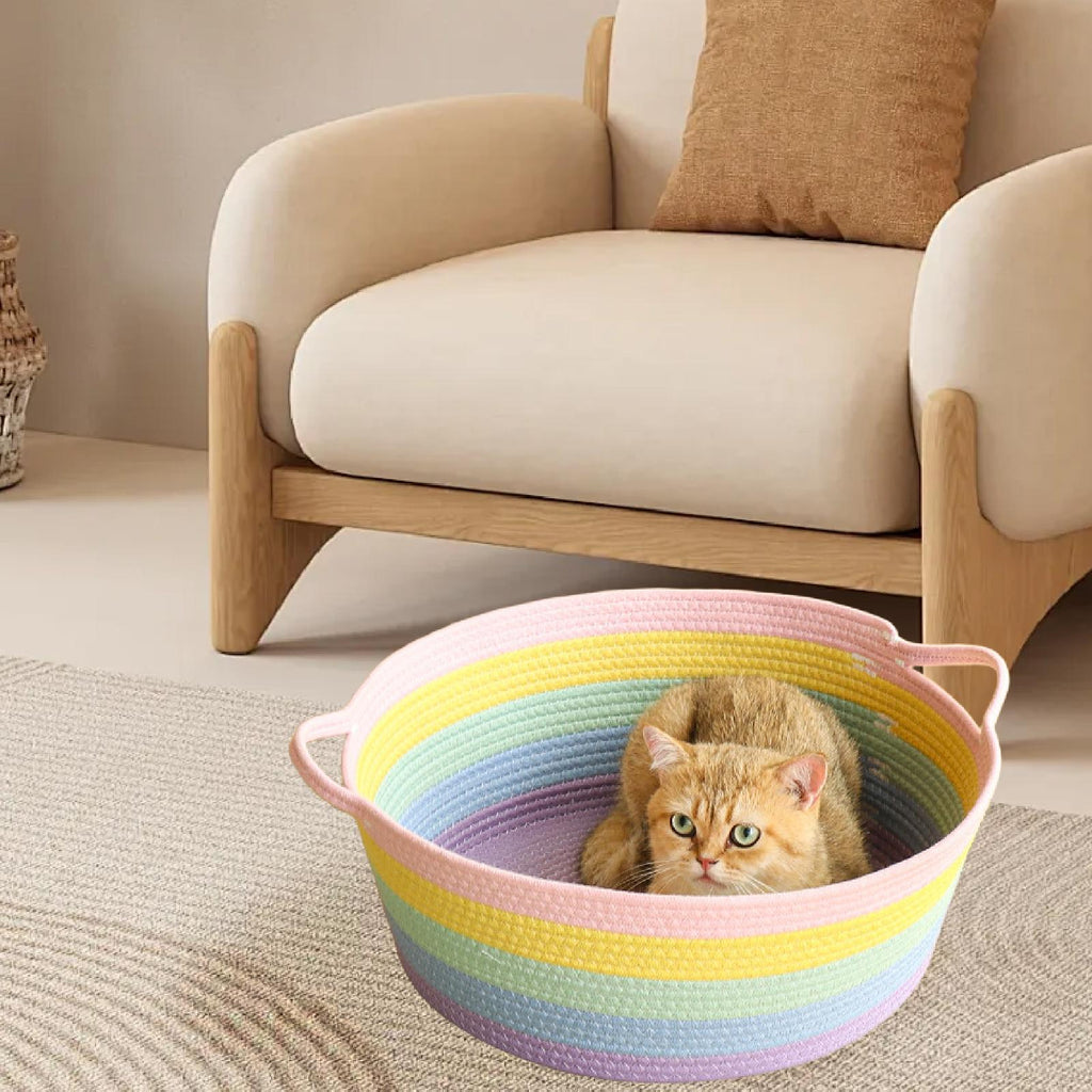 【Breathable Material】: Made from quality cotton rope, this Cat Basket is sturdy, wear resistant, and highly breathable—keeping your pet cool in summer and warm in winter