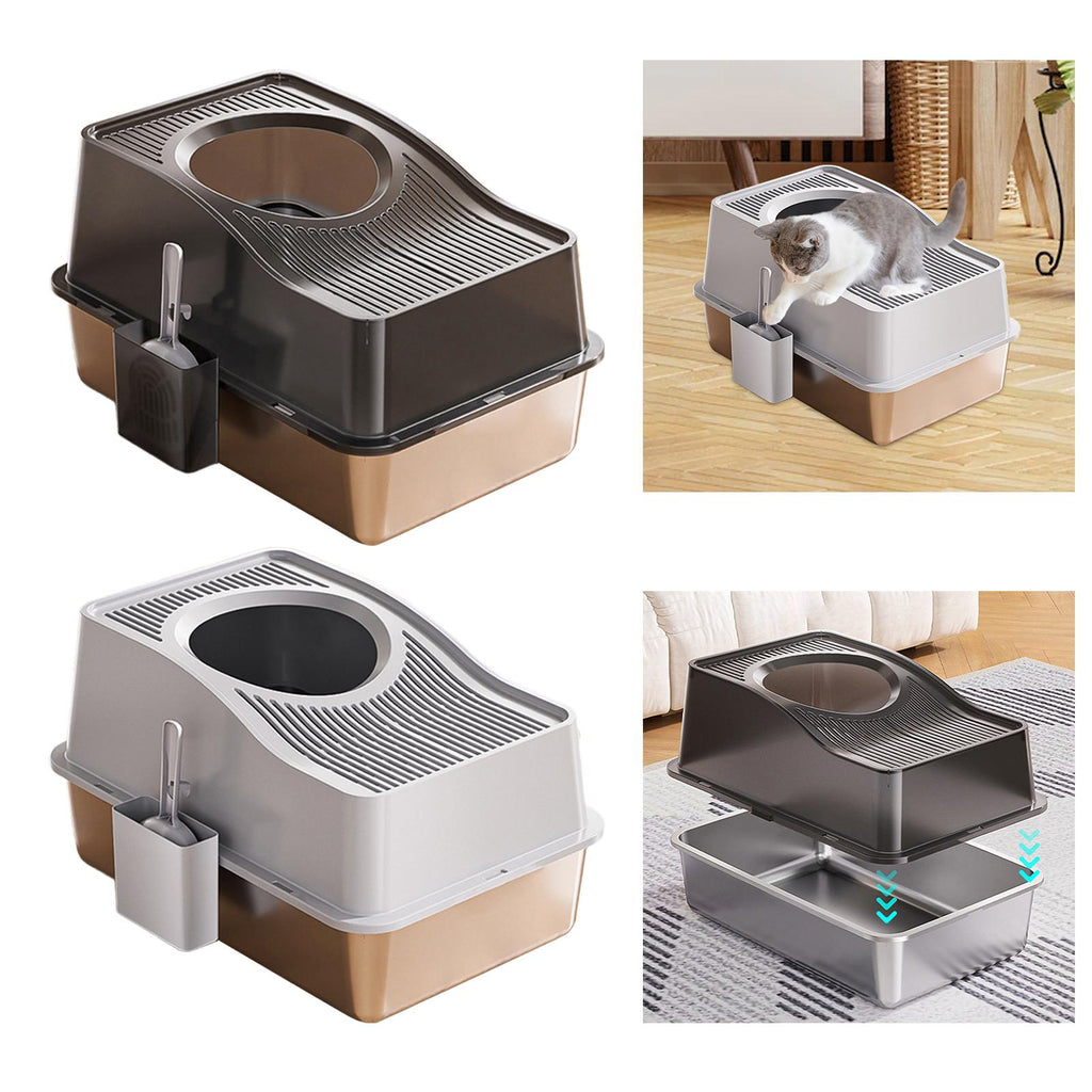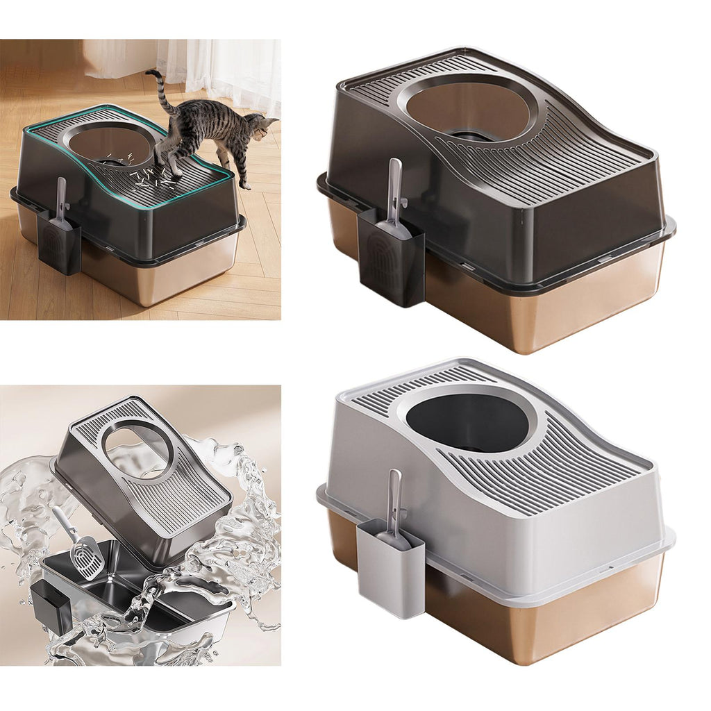 【No Smell Cat Litter Box】Smooth stainless steel litter box won't rust or scratch, and easy to clean