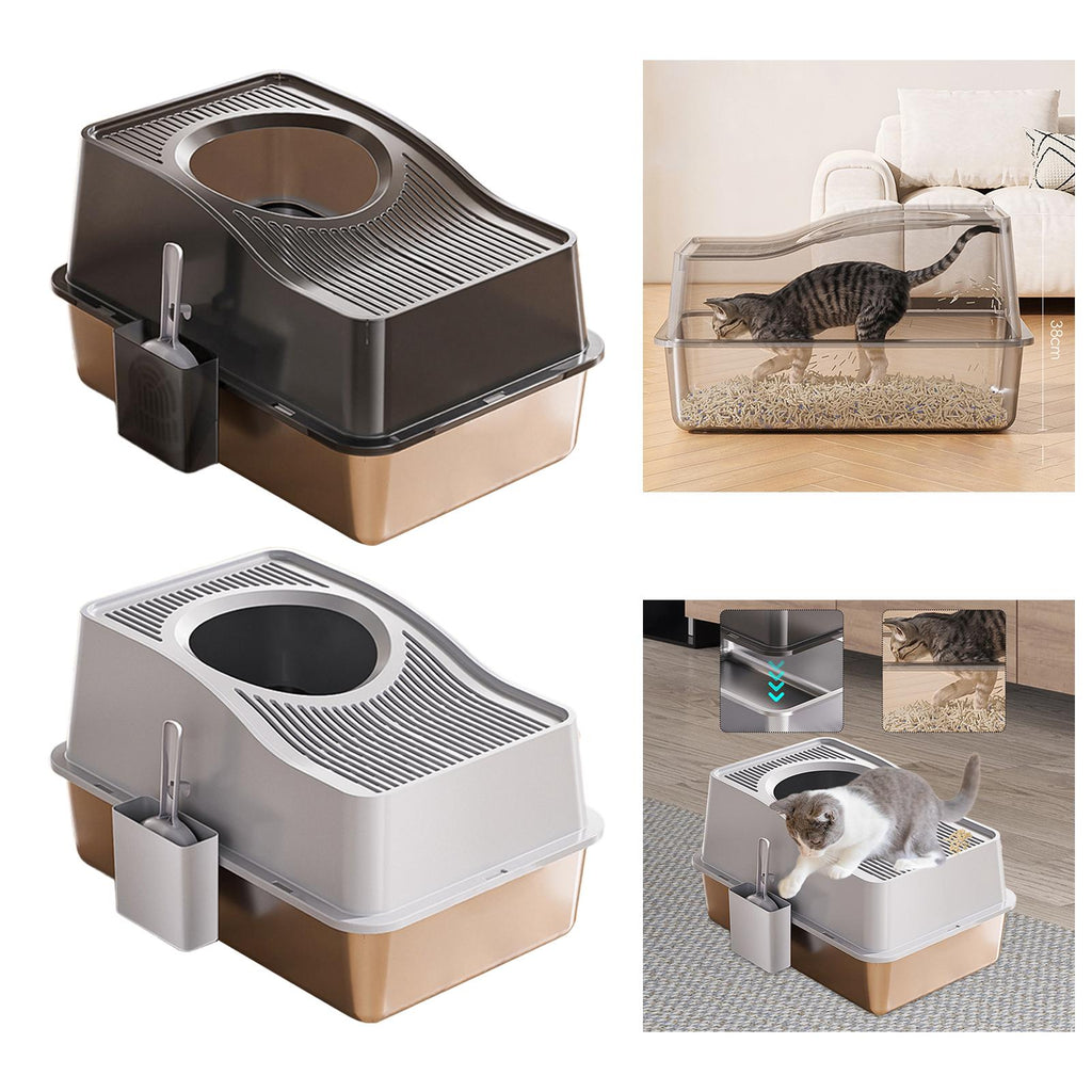 Maxbell Fully Enclosed Cat Litter Box Toilet Sturdy Splash Free Versatile Cat Bedpan Black