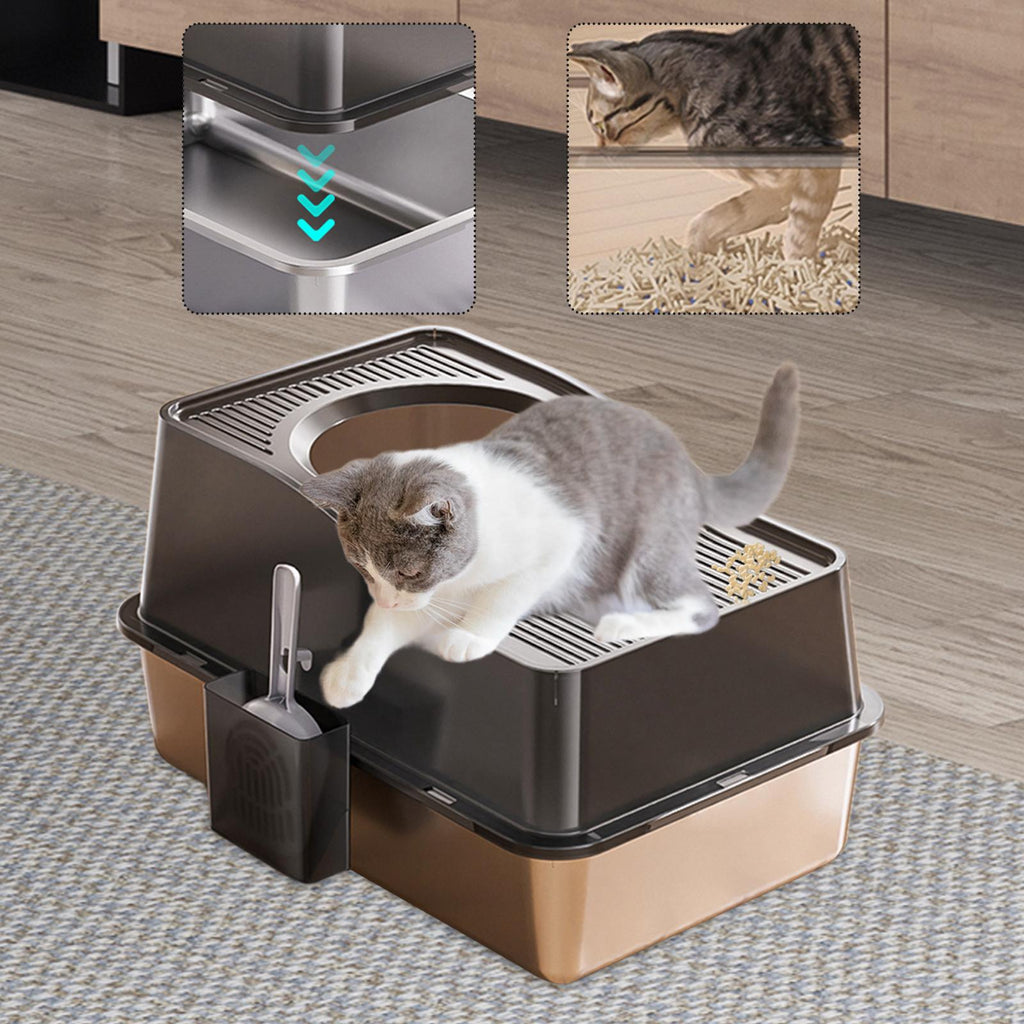 【Material】Cat Litter Box Enclosed Cat Toilet is made of stainless Steel, PP material, lightweight and sturdy structure