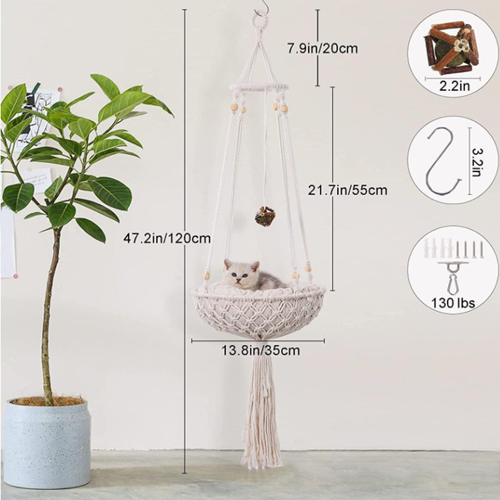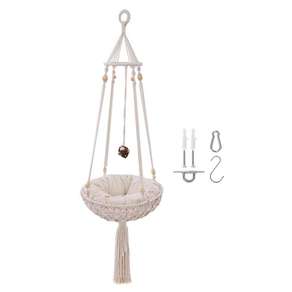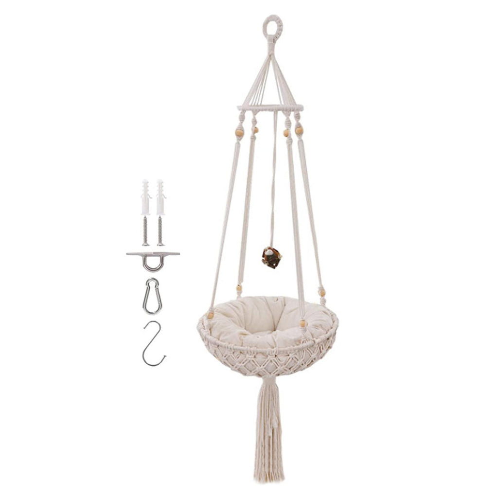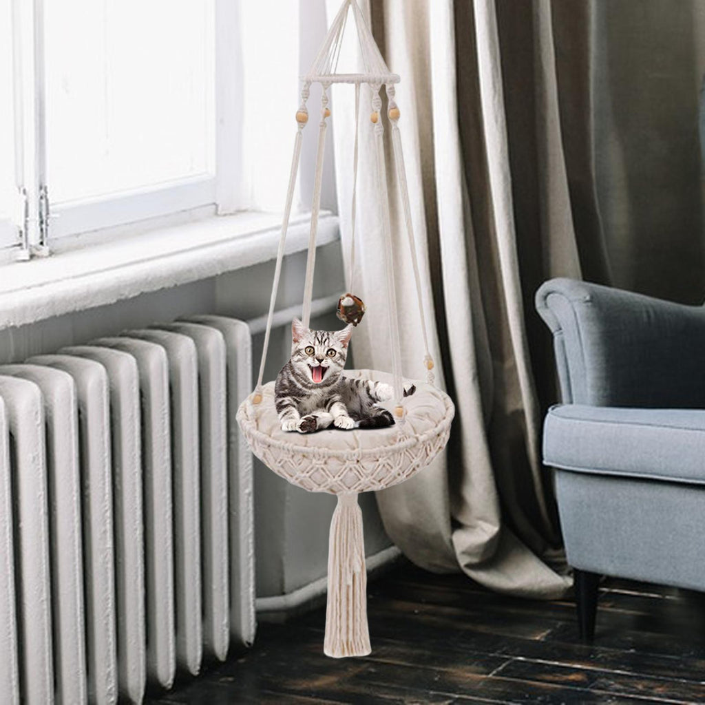 Exquisite Design: Built just for your cat to hang out in the house. It is a macrame cat hammock, also a very chic tassel decor.