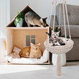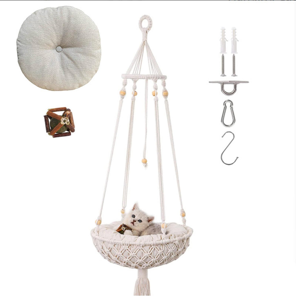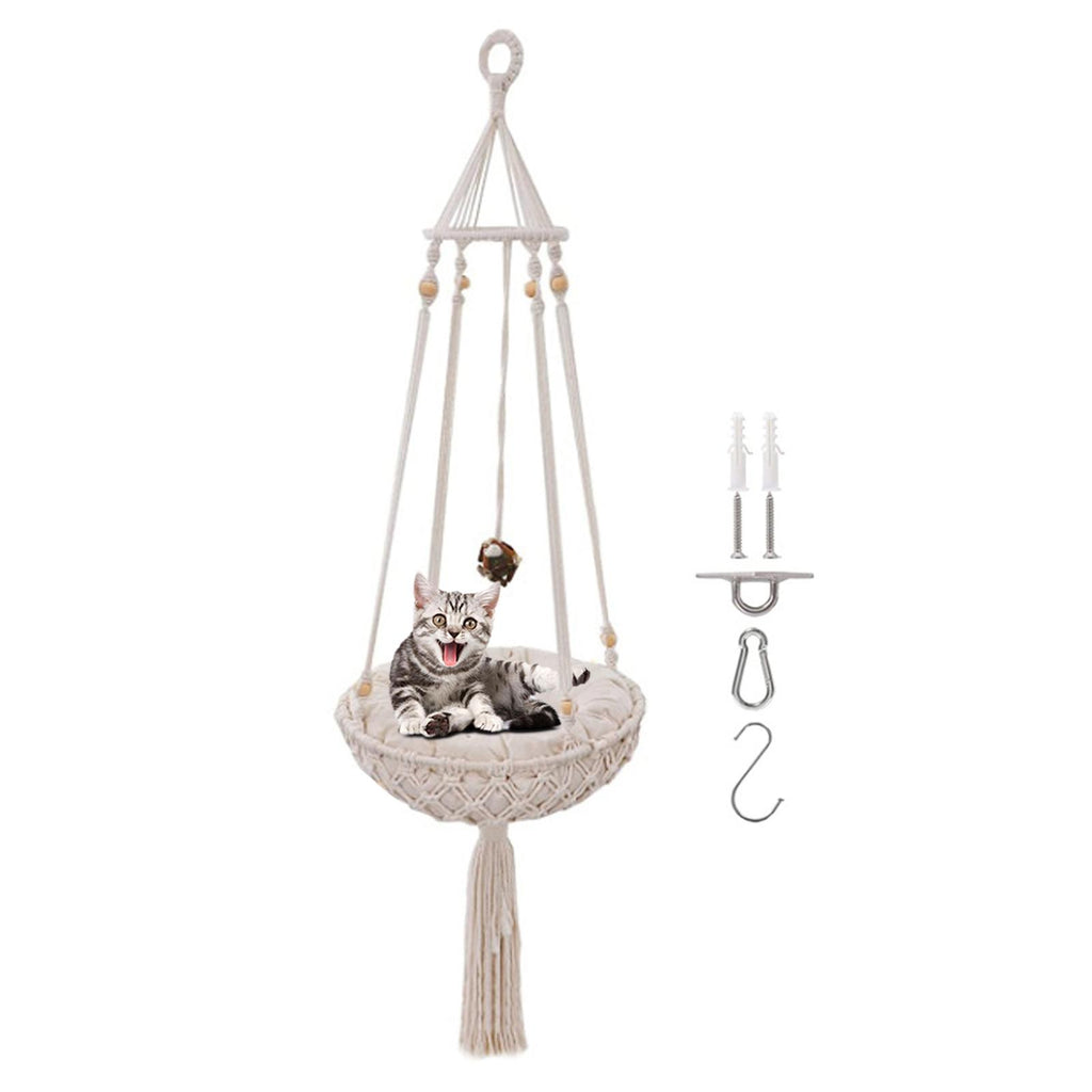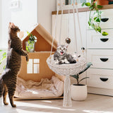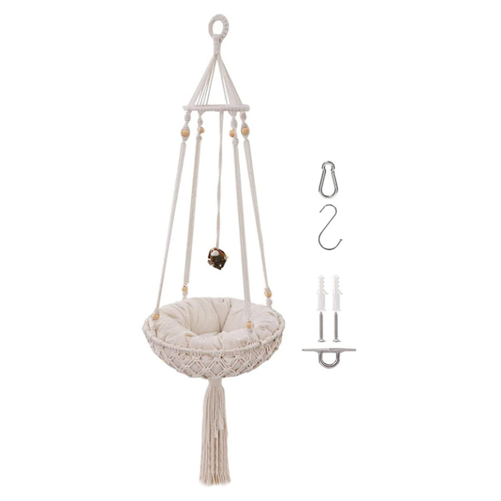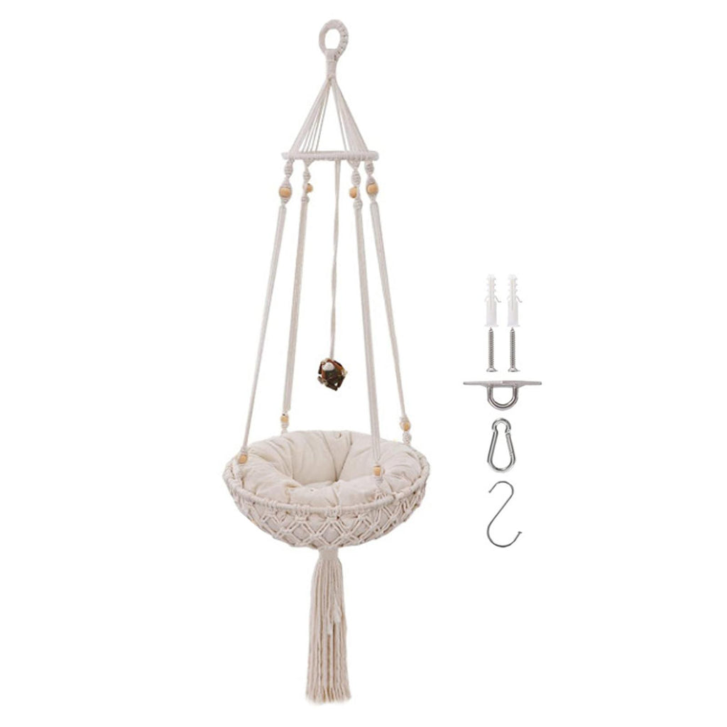 Exquisite Design: Built just for your cat to hang out in the house. It is a macrame cat hammock, also a very chic tassel decor.