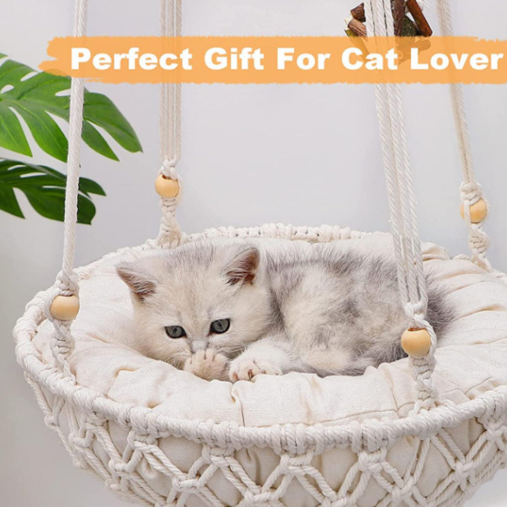 Maxbell Macrame Cat Hammock Cat Bed Kitten Wall Hanging for Outdoor Resting Sleeping