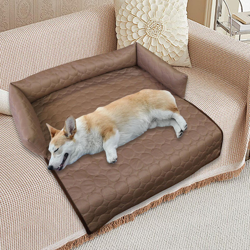 Maxbell Summer Cooling Dog Bed with Pillow Washable Cat Pad for Small Dogs Home Cats 90cmx18cm coffee