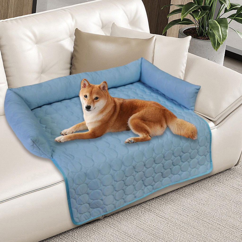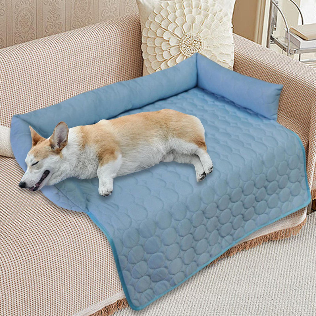 Maxbell Summer Cooling Dog Bed with Pillow Washable Cat Pad for Small Dogs Home Cats 90cmx90cmx18cm blue