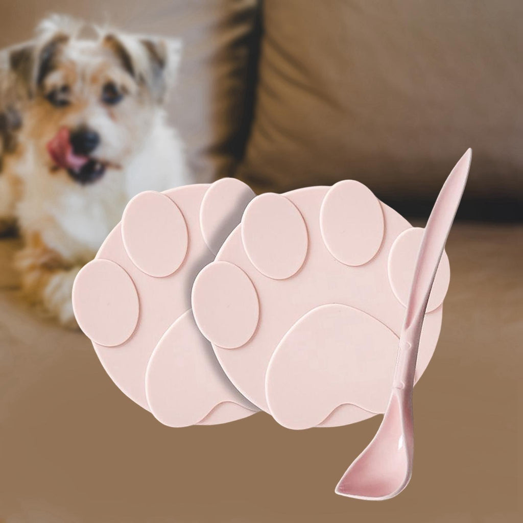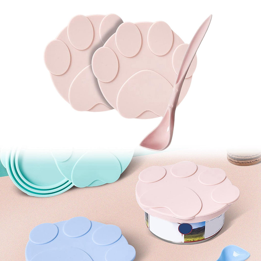 Maxbell 2 Pieces Pet Food Can Lids Silicone Dog Cat Food Can Covers Food Spoon Pink
