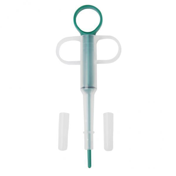 The Pet Piller Syringe has finger rings for better control when giving a tablet or capsule. The soft rubber jaws that hold the tablet