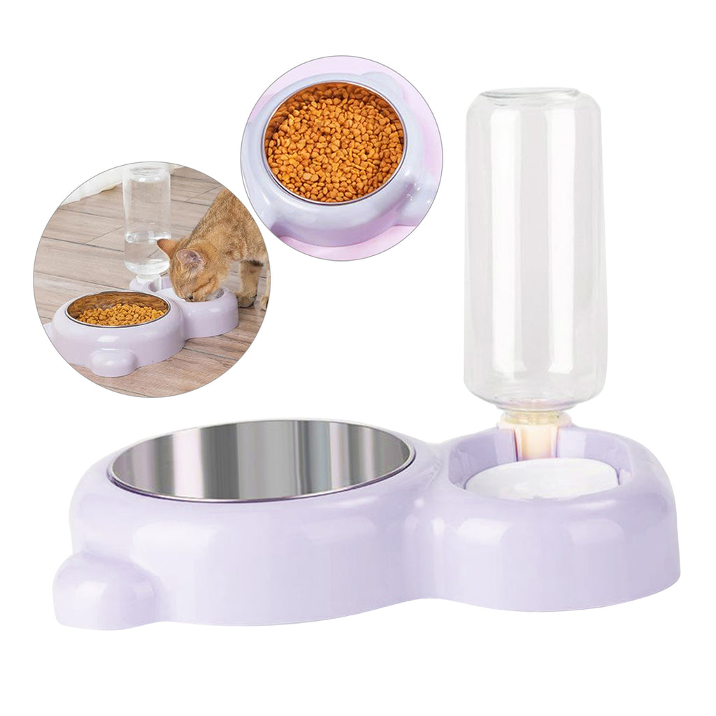 Maxbell Automatic Pet Feeder Auto Dog Cat Food Water Bowl Dispenser Purple