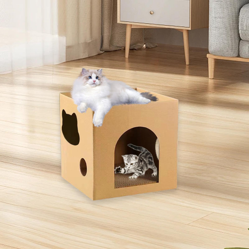 【Eco Friendly】: Crafted from high hardness corrugated paper, this cat scratcher house is both safe and environmentally friendly. It is odorless and designed to withstand your pet's playful scratching