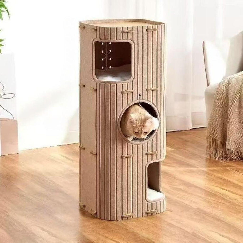 【Stylish Home Addition】: Three layers Cat Cave Felt Cat Climbing Tower featuring a simple yet fashionable design, this cat tree seamlessly integrate into various home decor style