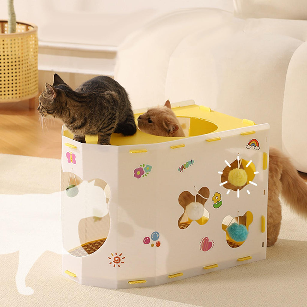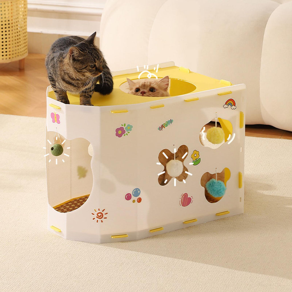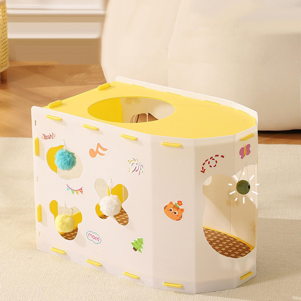 Maxbell Cat House Scratch Resistant Lounge with Stickers for Pet Small Cats Sleeping Yellow