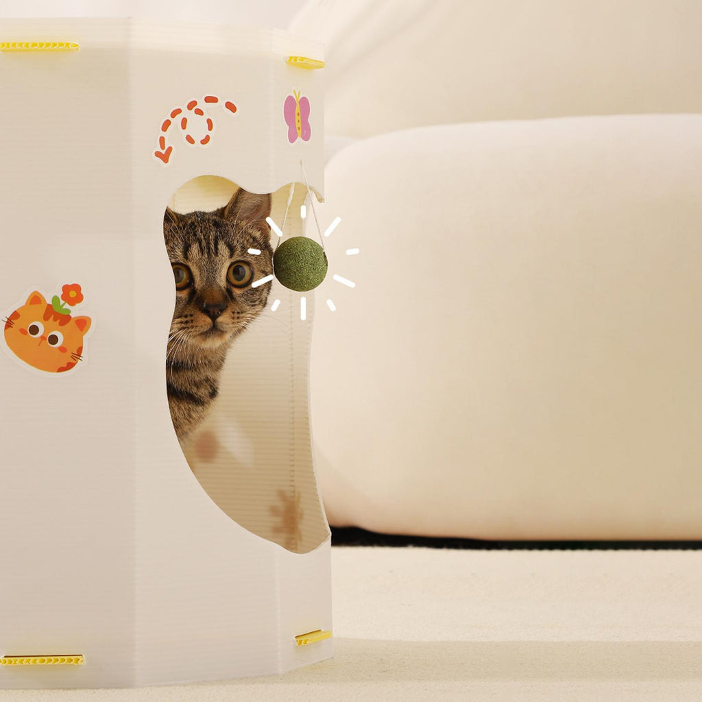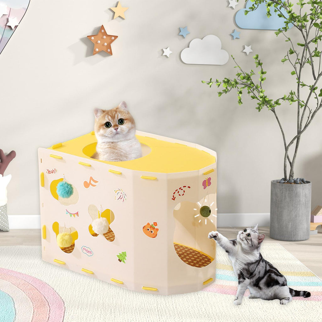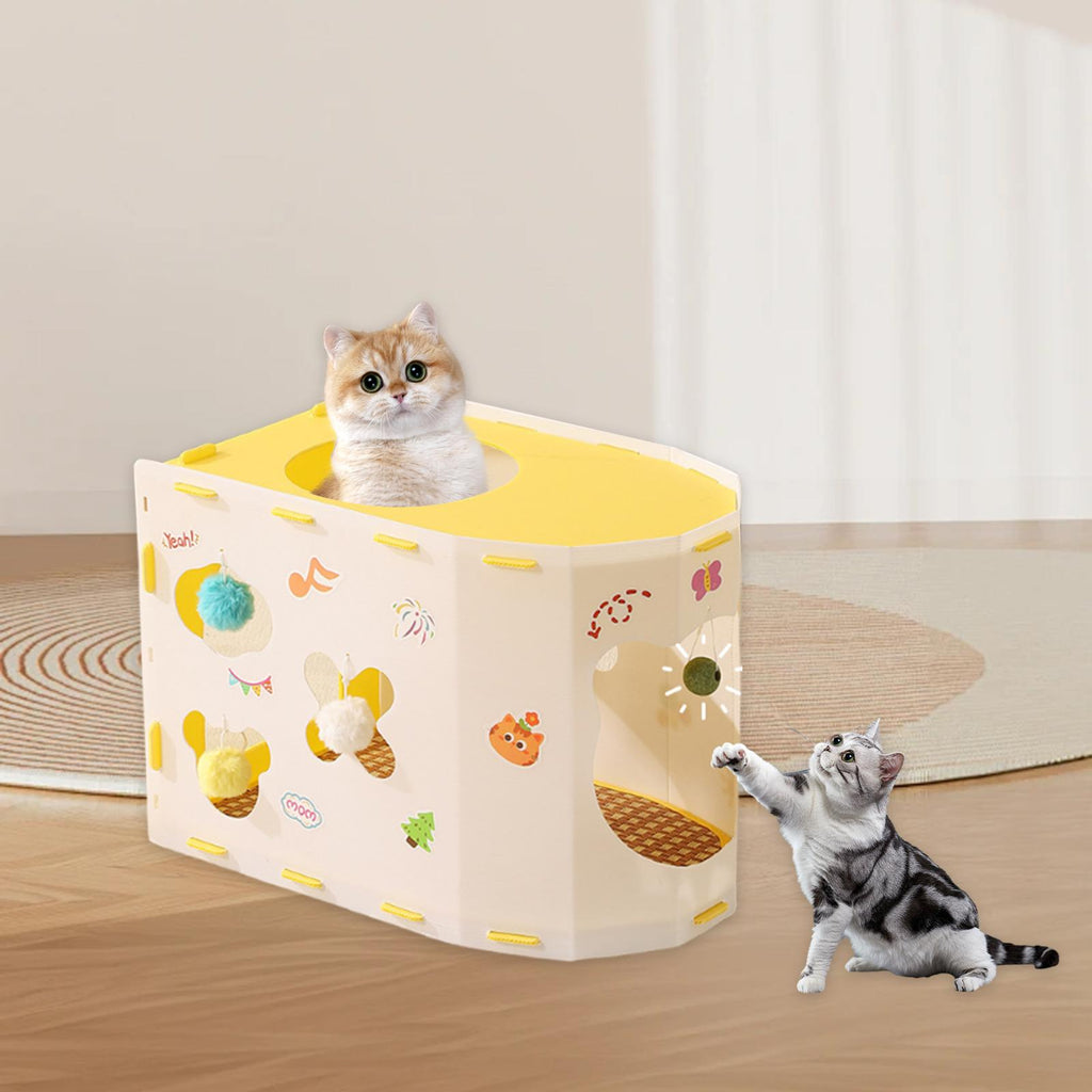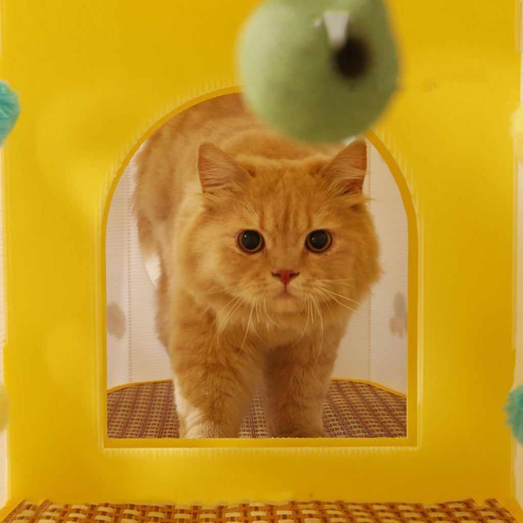 Maxbell Cat House Scratch Resistant Lounge with Stickers for Pet Small Cats Sleeping Yellow