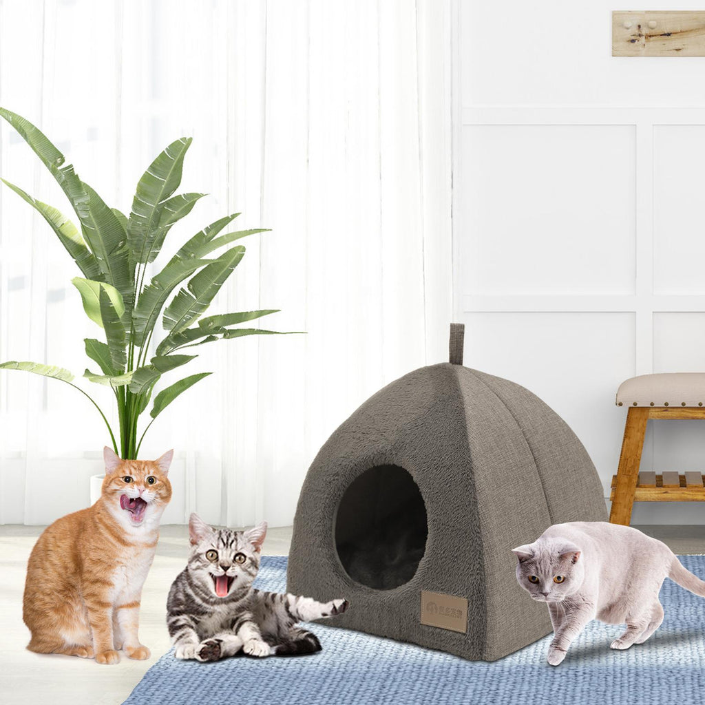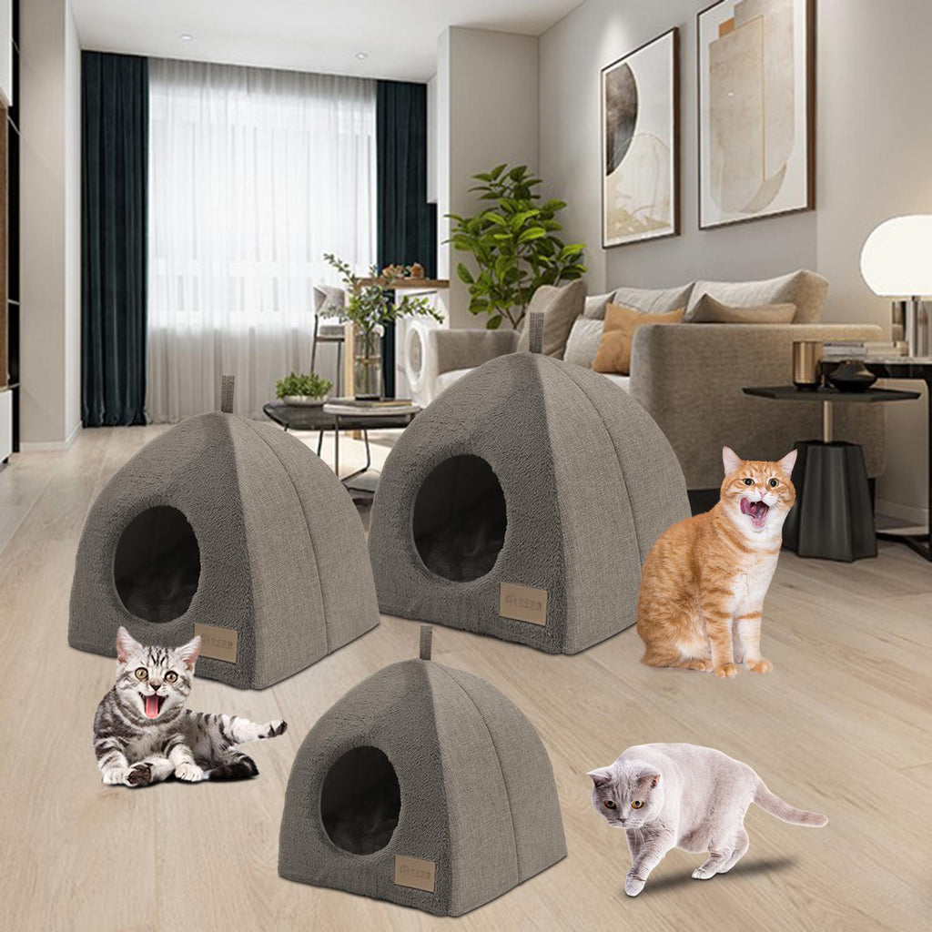 Design: This cat and dog house is a triangle shape, semi enclosed space, with a nonslip bottom, that meets privacy, and makes your kittens feel warm.