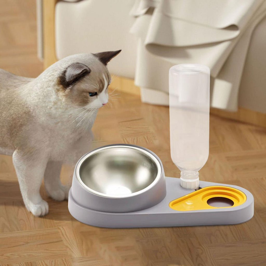 Maxbell Dog Cat Double Bowl Food Water Bowl Tilted Anti Spill Feeder Bow Detachable Grey