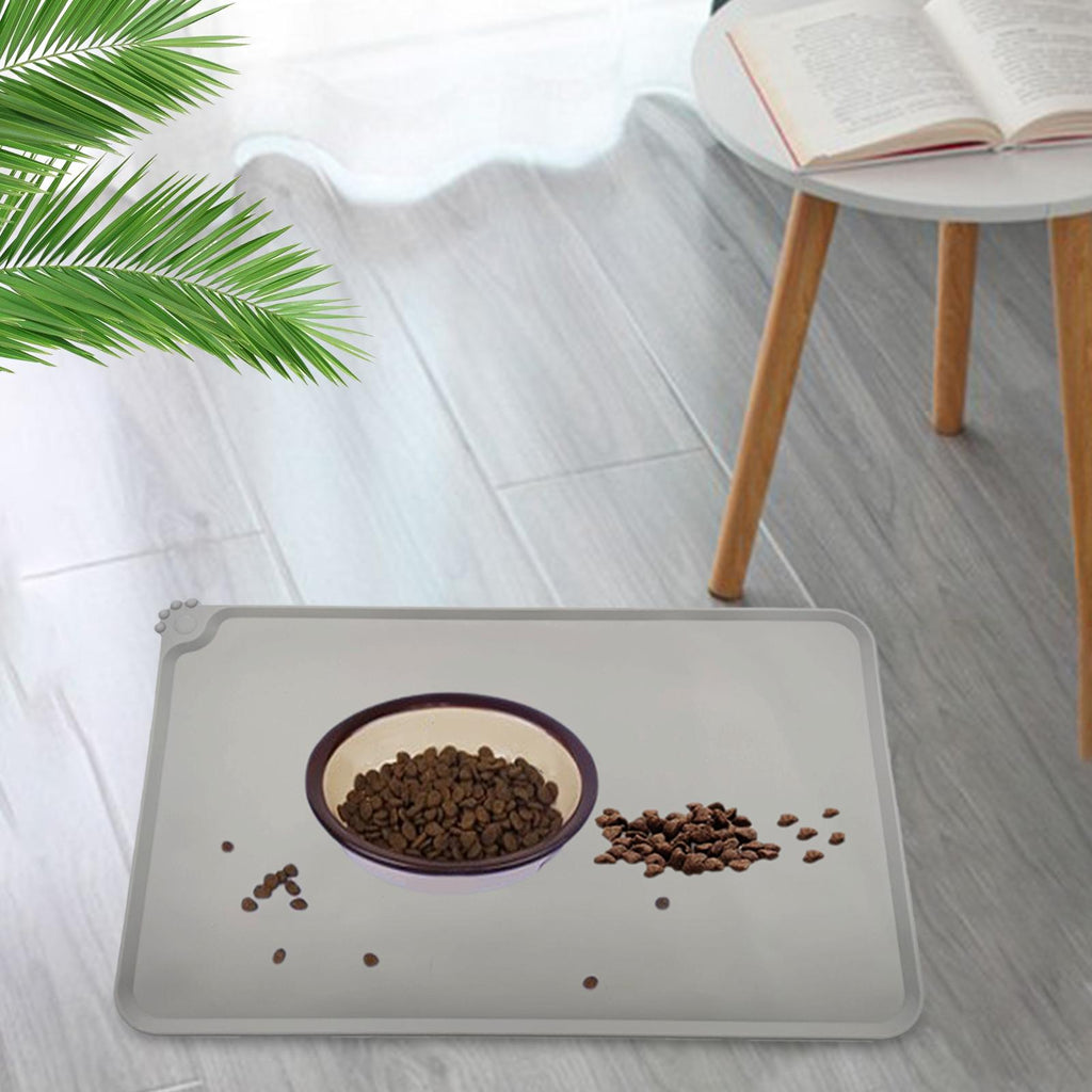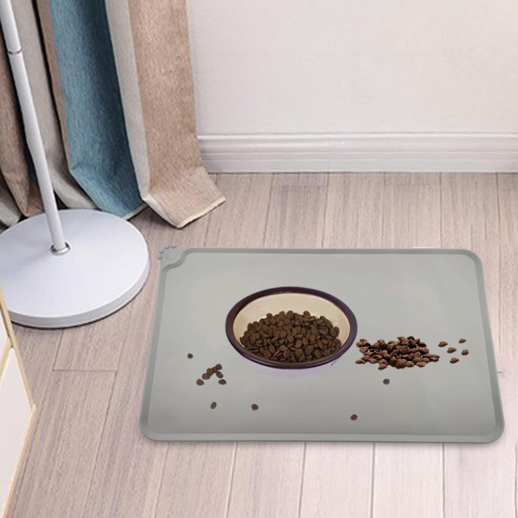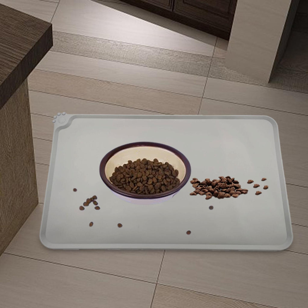 Maxbell Dog Cat Food Mat Foldable with Raised Edge Waterproof Easy Clean Nonslip Gray