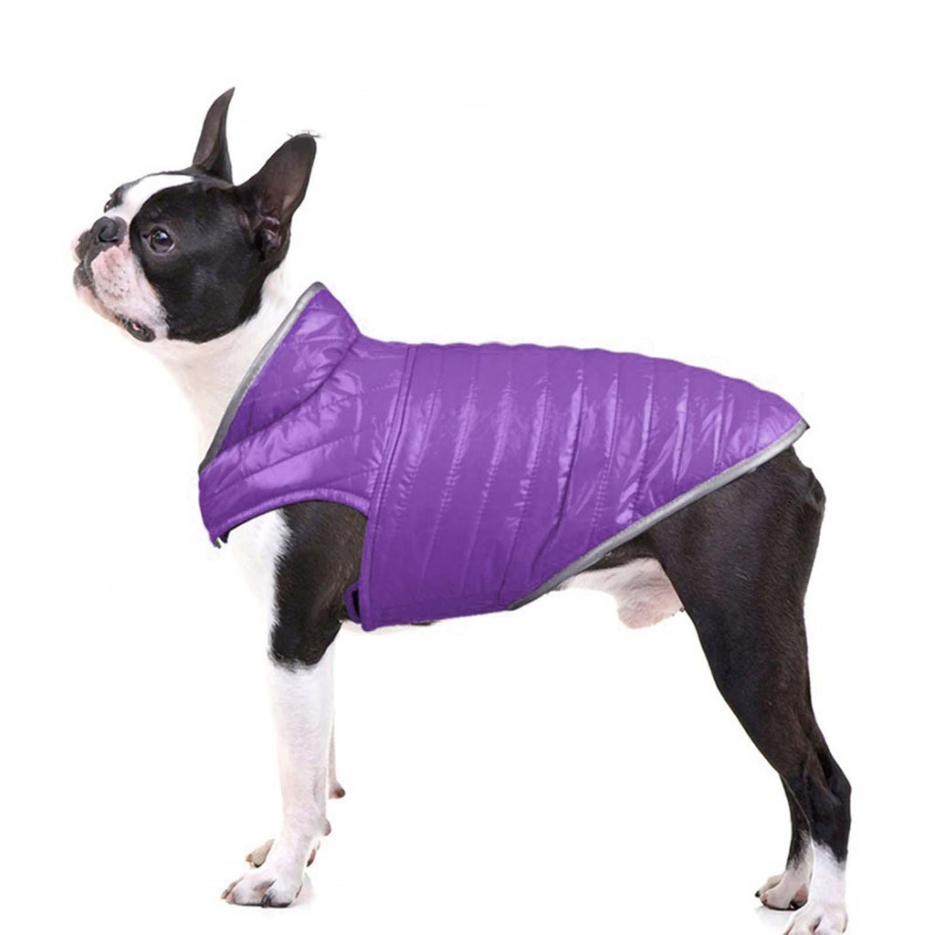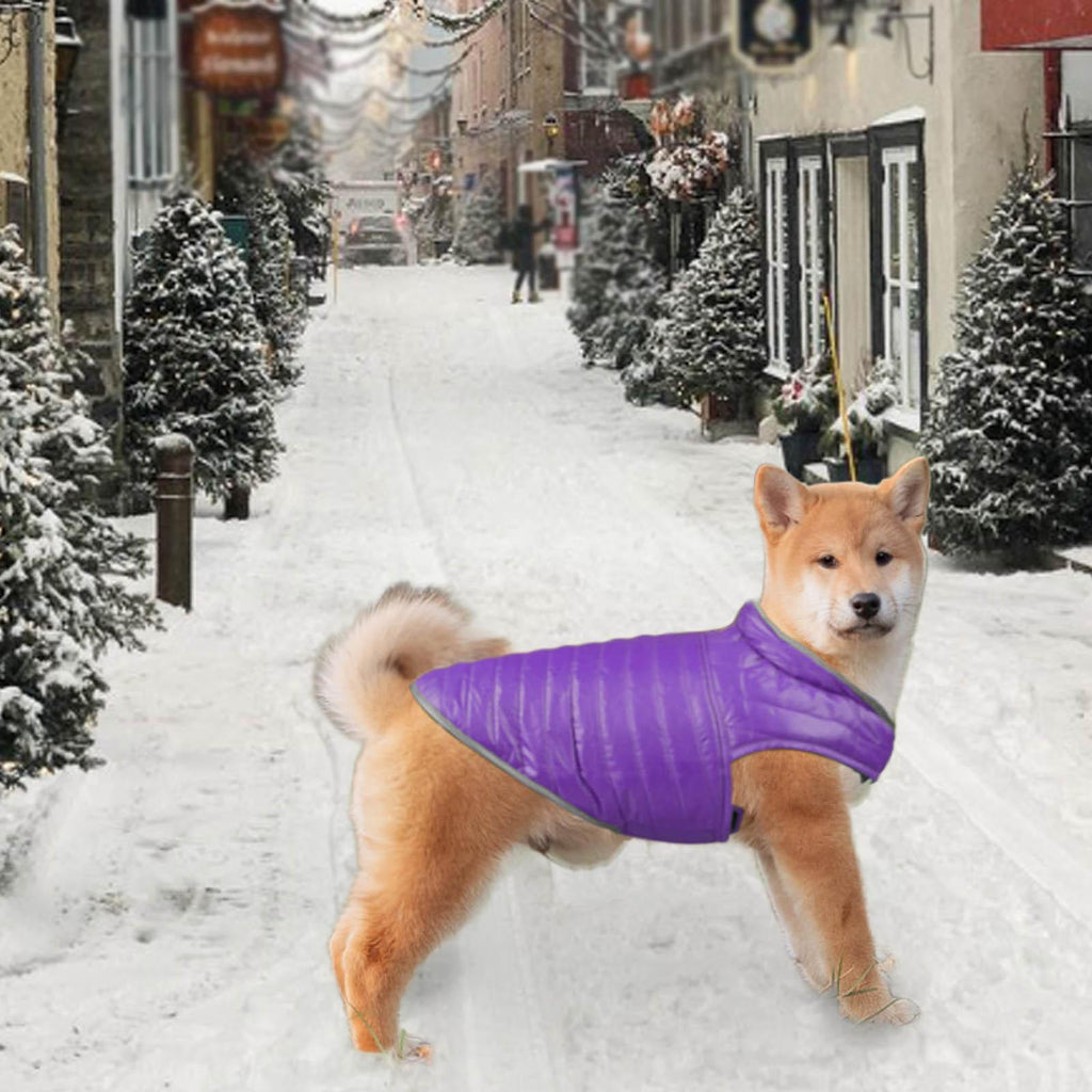 Maxbell Dog Winter Coat Adjustable Full Body Clothing Reversible Apparel Pet Clothes violet and green
