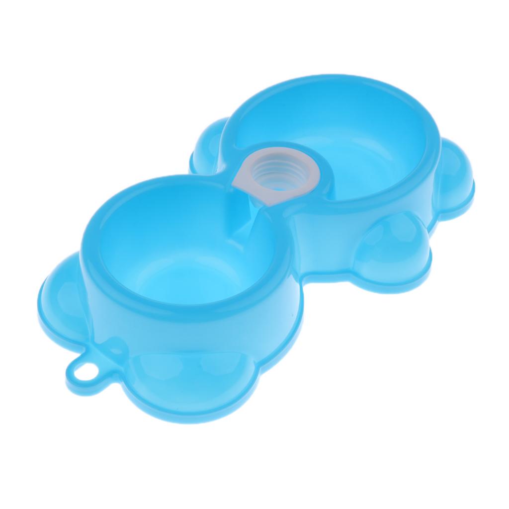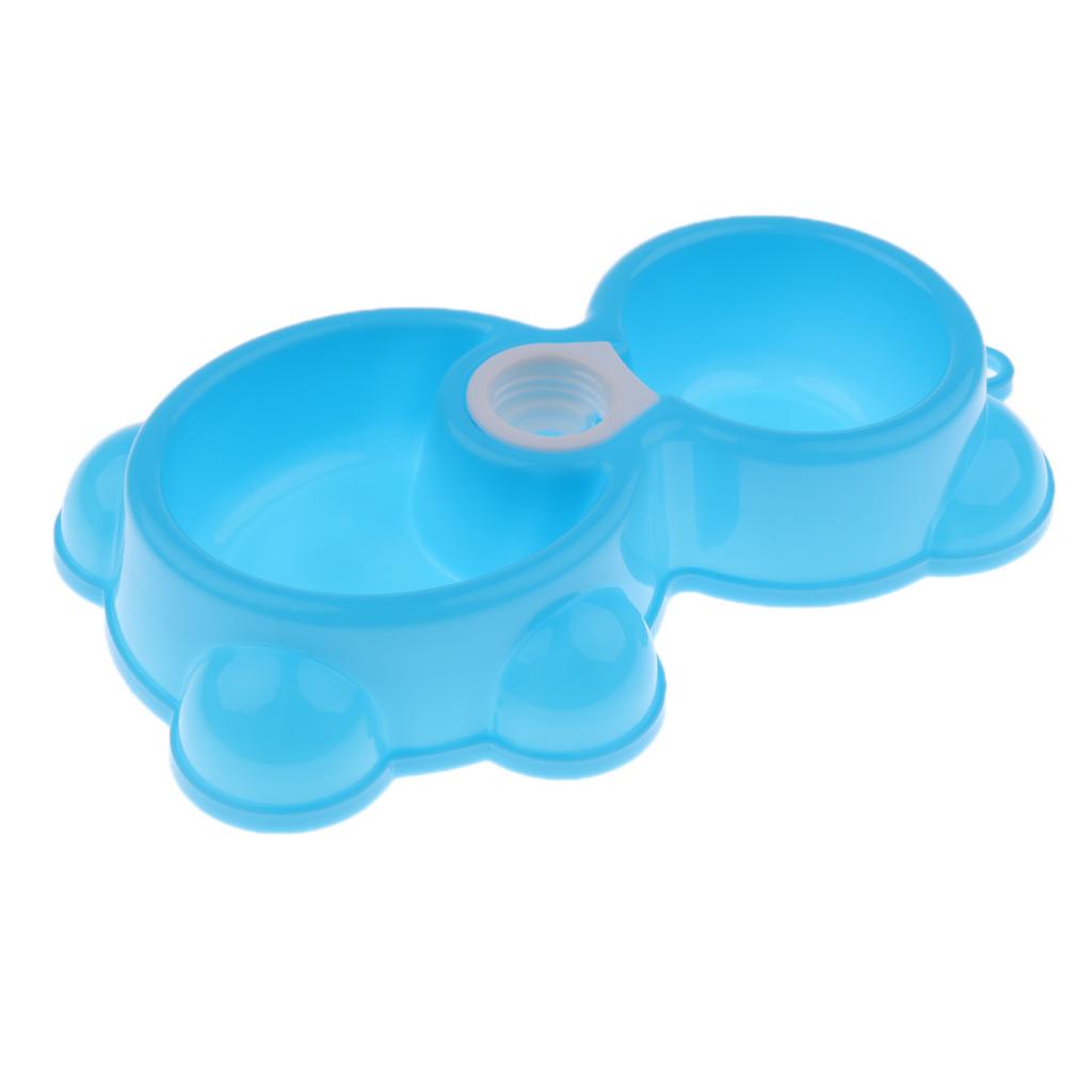 Maxbell Maxbell Dual-use Pet Dog Cat Food Water Fountain Dish Feeder Plastic Twin Bowl Blue