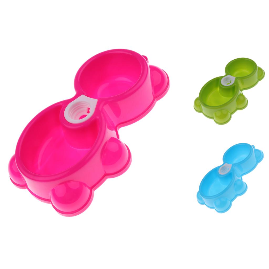 Maxbell Maxbell Dual-use Pet Dog Cat Food Water Fountain Dish Feeder Plastic Twin Bowl Rose Red