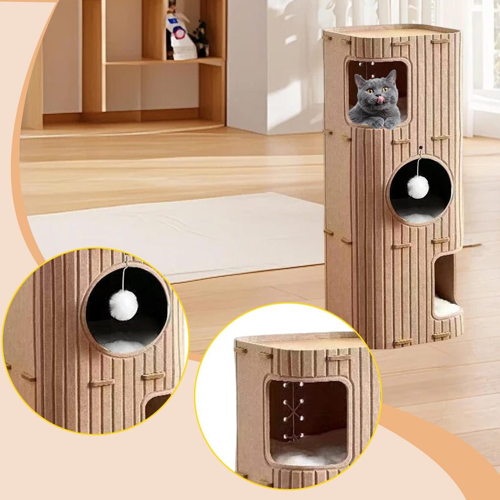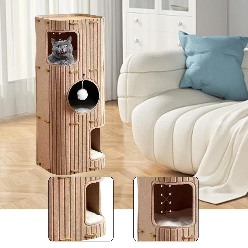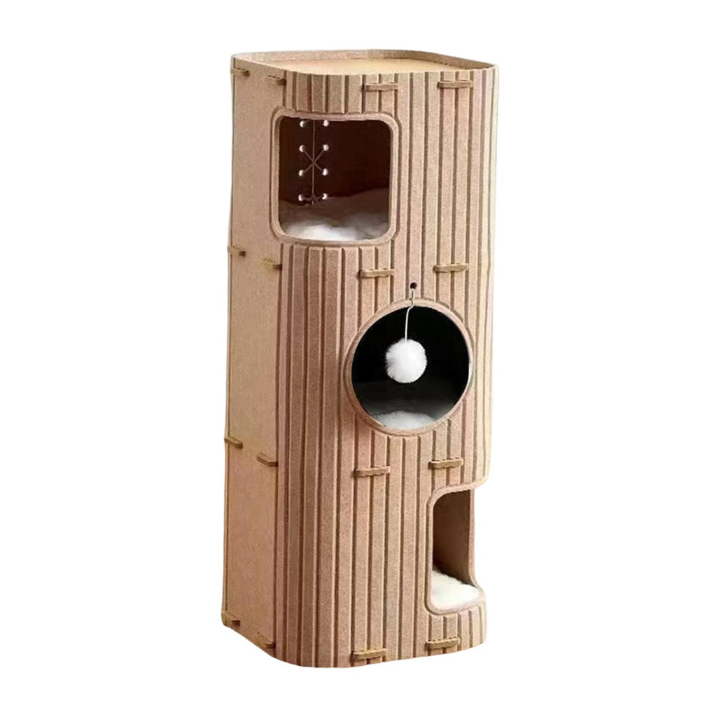 Maxbell Felt Cat House 3 Story Multifunctional for Indoor Cats Kittens Cat Furniture Camel