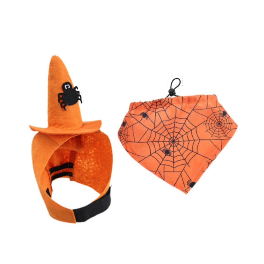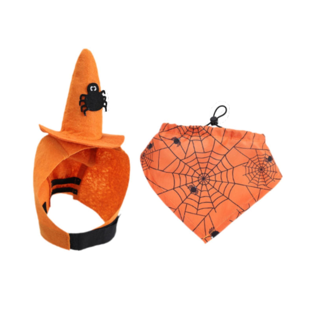 Maxbell Halloween Pet Costume Hat and Bandana Set Cute Fancy Dress up for Dog Cats Orange S