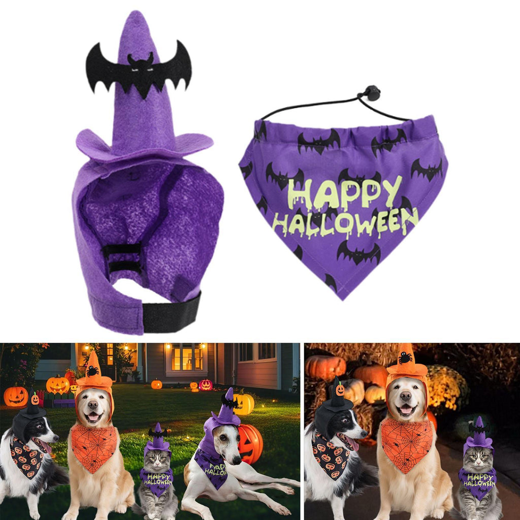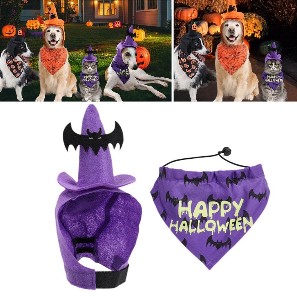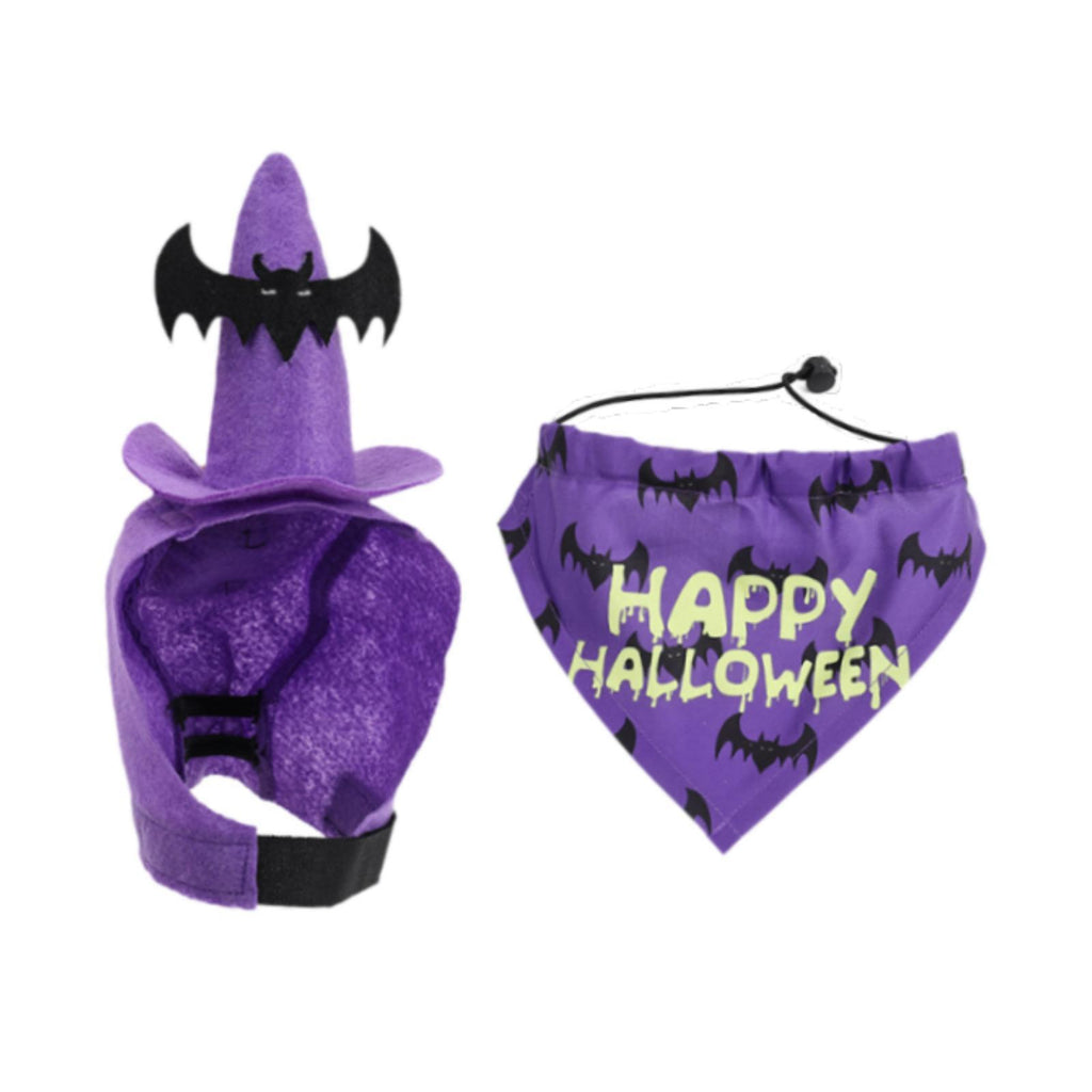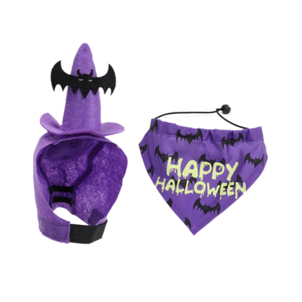 Maxbell Halloween Pet Costume Hat and Bandana Set Cute Fancy Dress up for Dog Cats Purple S