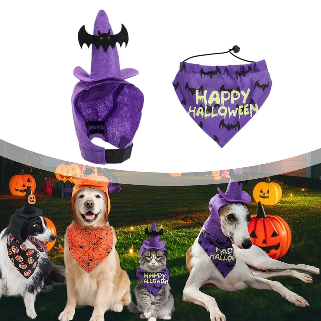 【Dog Costume Set】: Transform your pet into a charming character with this hat and triangle scarf set, for Halloween or any fun occasion