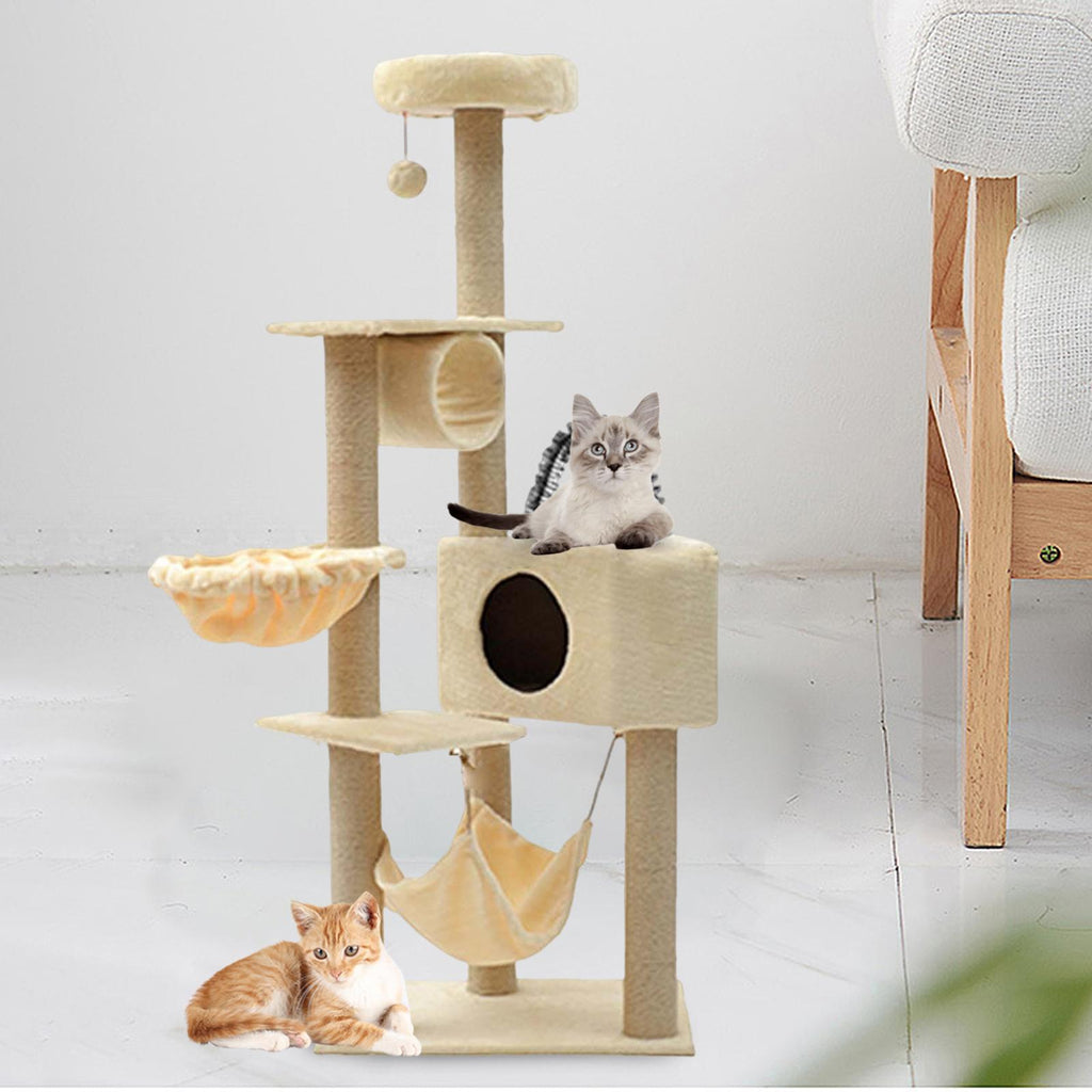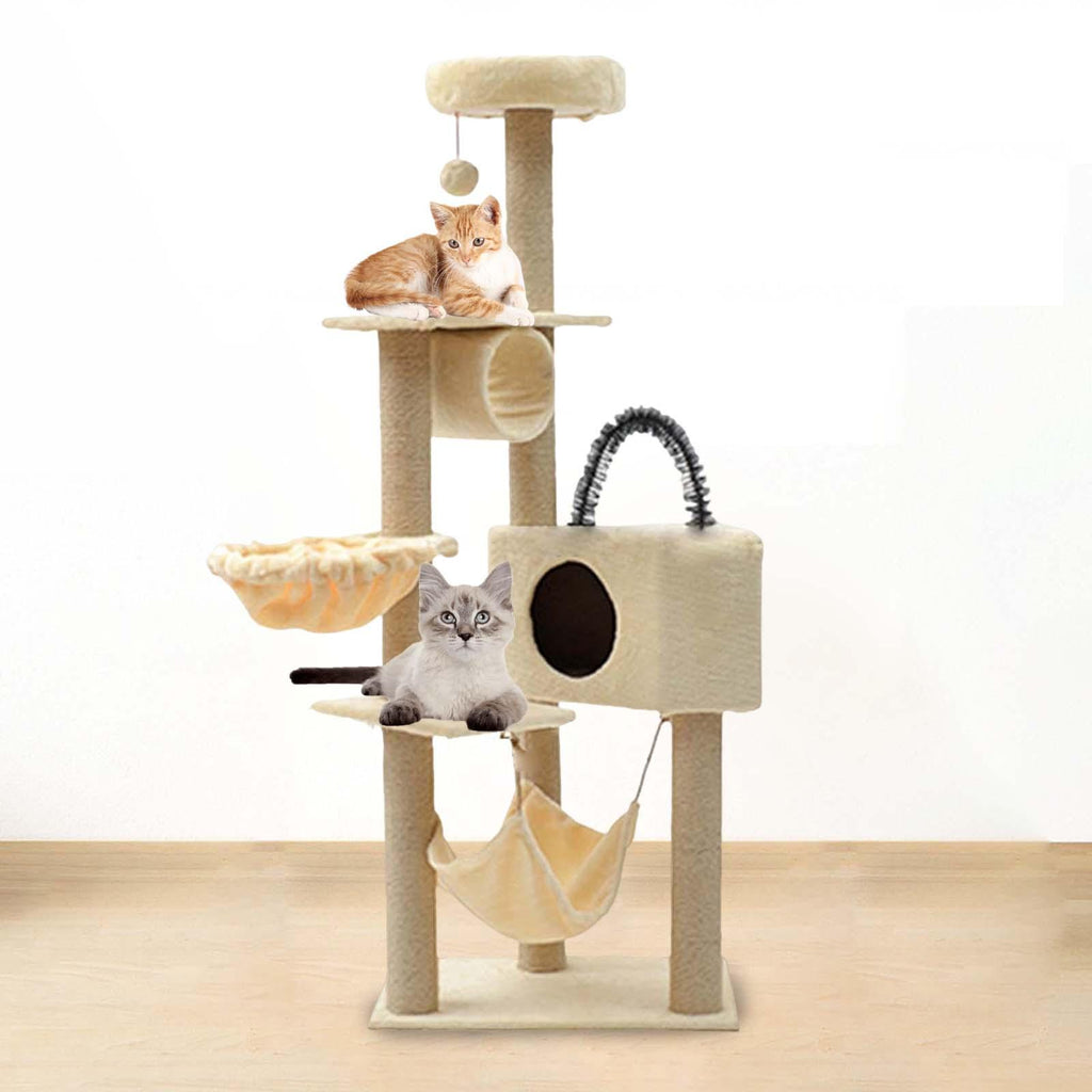 Maxbell Multi Layer Cat Condo Hammock Bed Cat House Cat Climbing Tree for Rest Play Beige