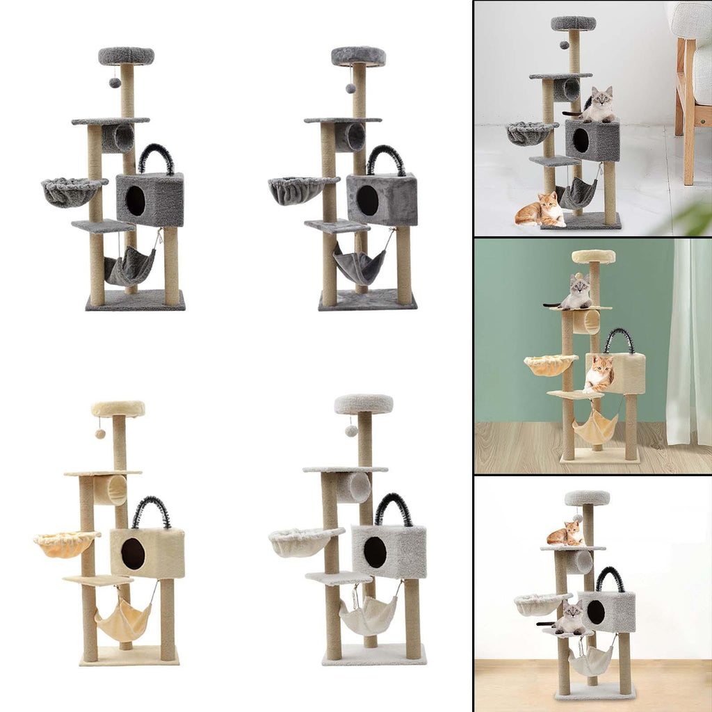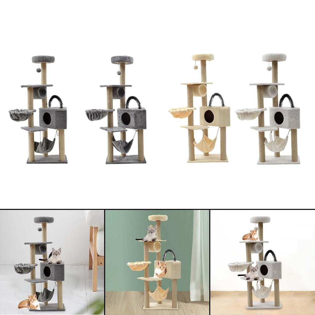 CAT FURNITURE: With a cat house, interactive Ball, hammock, the top perch. Durable and sturdy, space meets cat playing, making your kittens feel warm.