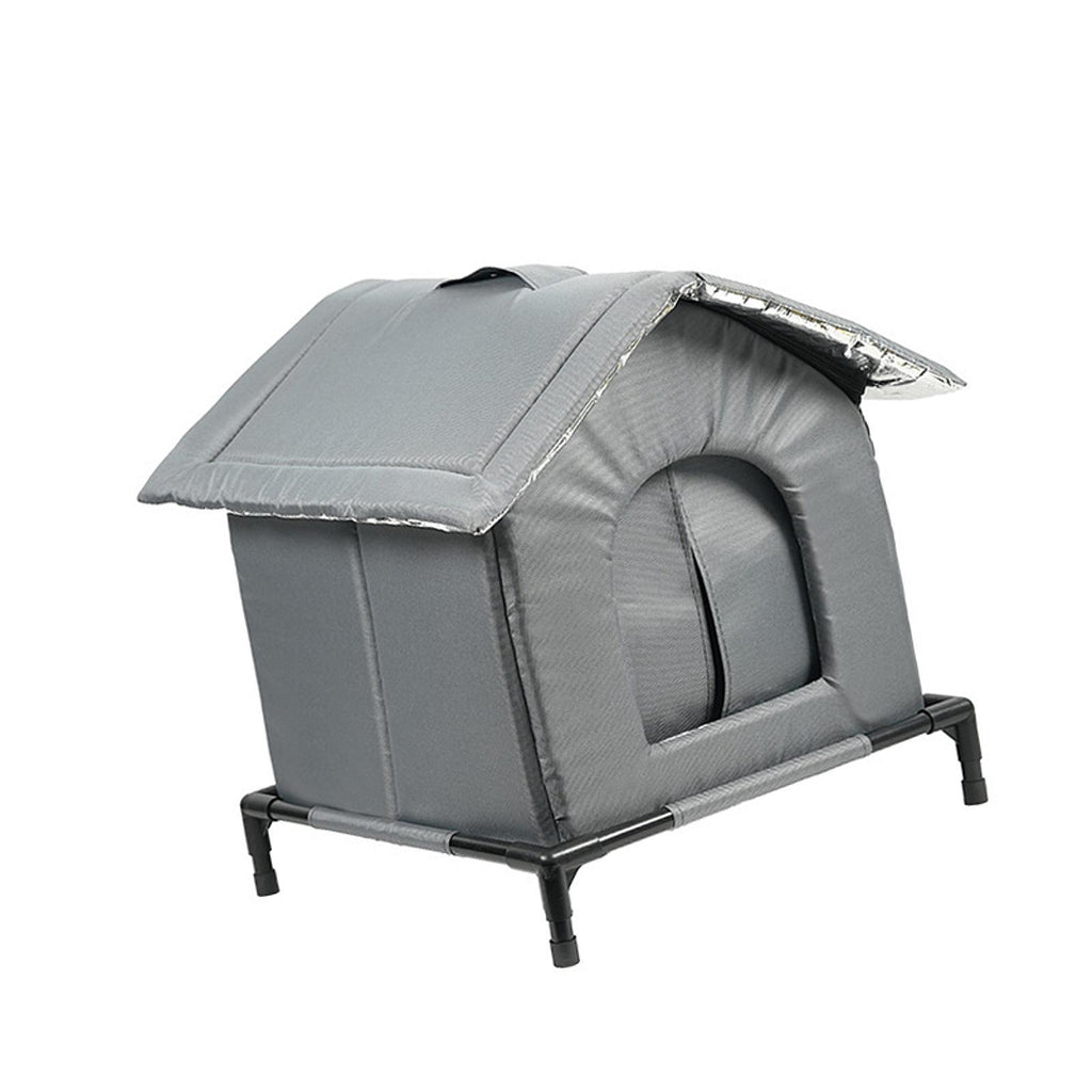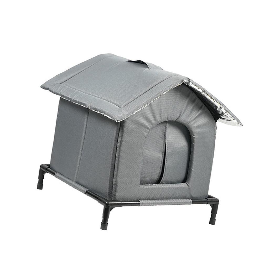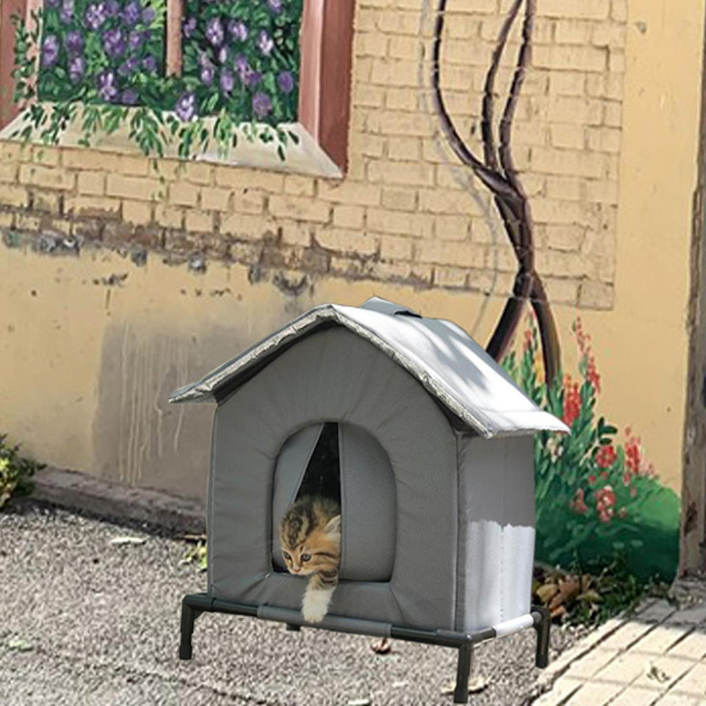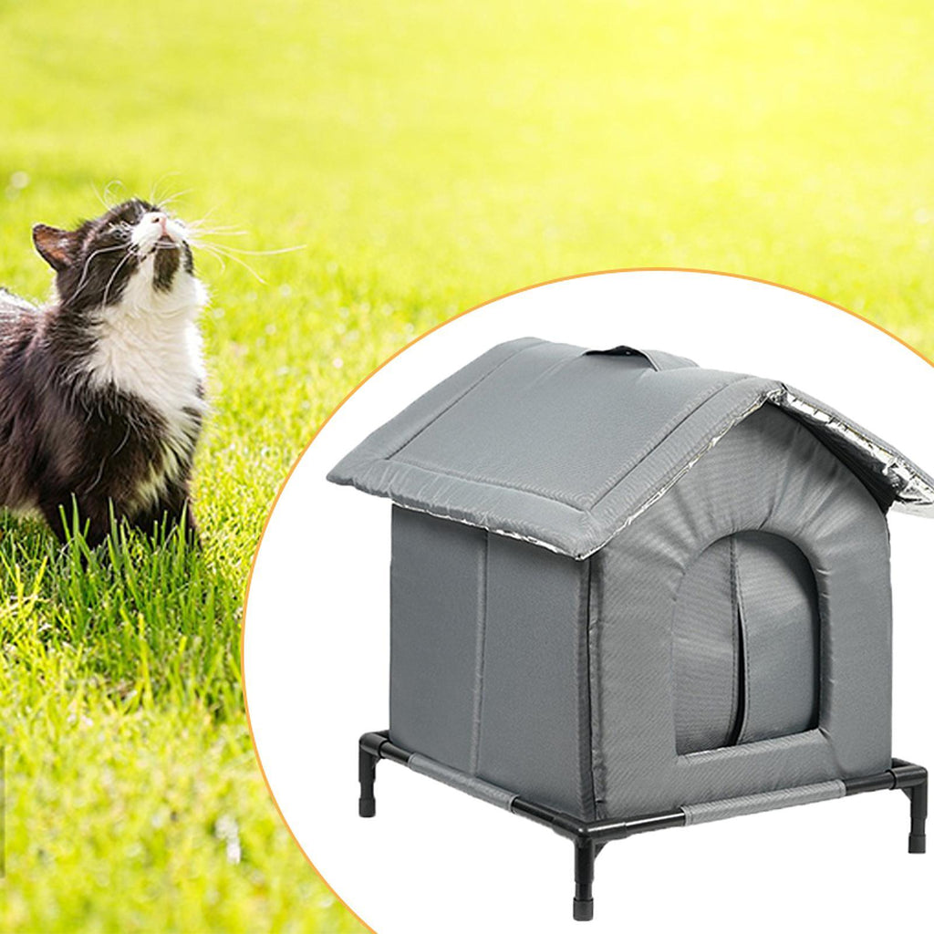 - 【Elevated Stand】: The weatherproof cat tent with elevated feet, keeps it off the ground and is waterproof and moistureproof. It comes with a soft pad inside, which is warm for pets