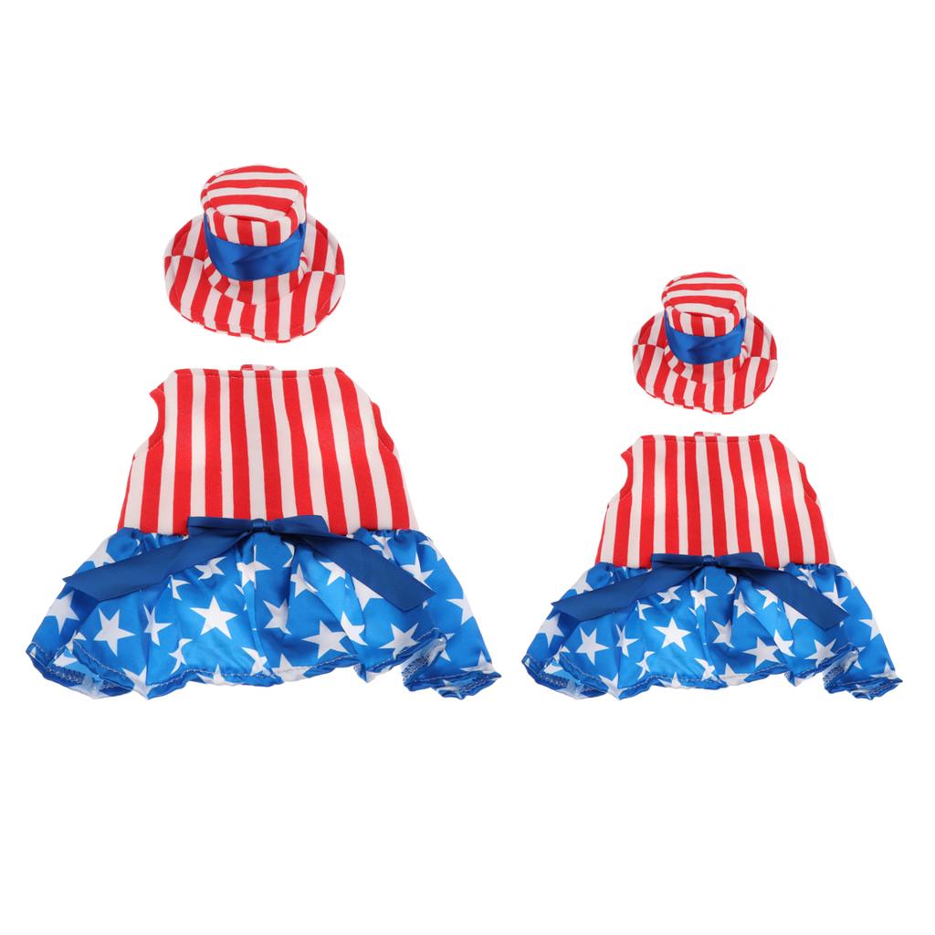 Cute and adorable funny pet dog cat USA flag girl suit clothing.