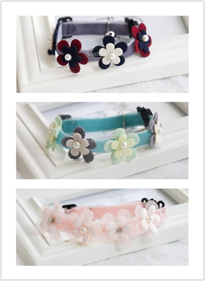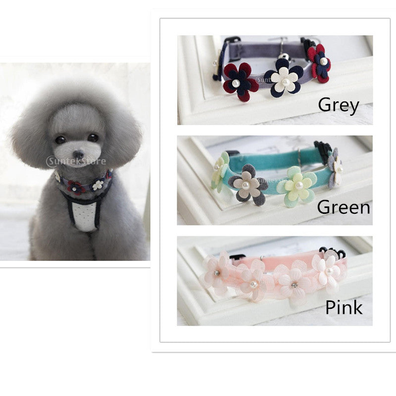 Maxbell Maxbell Pet Dog Cat Necklace with Flowers Artificial Pearl Bell Decor-Pink(M)