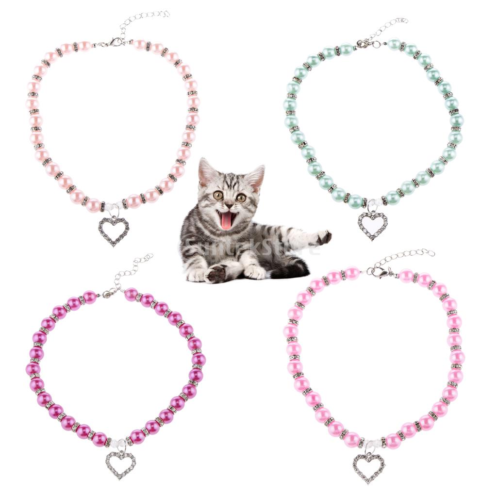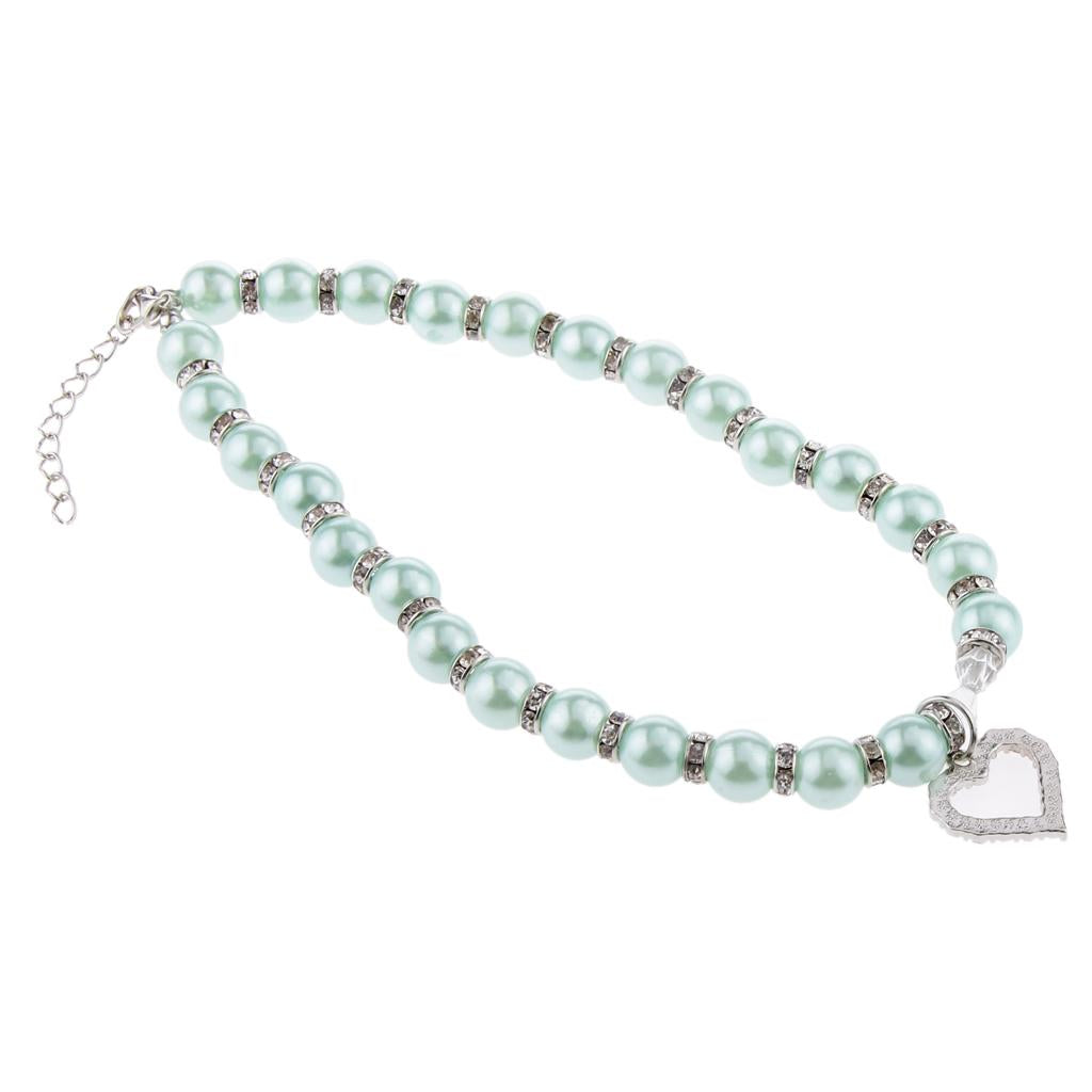 Maxbell Maxbell Pet Dog Cat Pearl Rhinestone Heart Pendant Necklace Collar Necktie Blue M