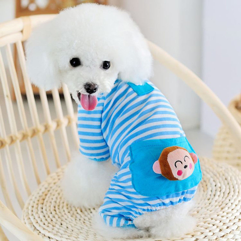 Maxbell Maxbell Pet Dog Cat Puppy Soft Striped Pajamas Jumpsuit Coat Clothes Apparel Blue S