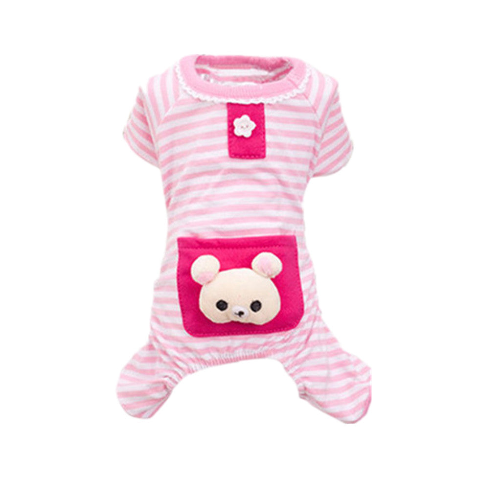 Maxbell Maxbell Pet Dog Cat Puppy Soft Striped Pajamas Jumpsuit Coat Clothes Apparel Pink L