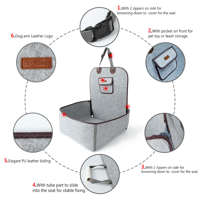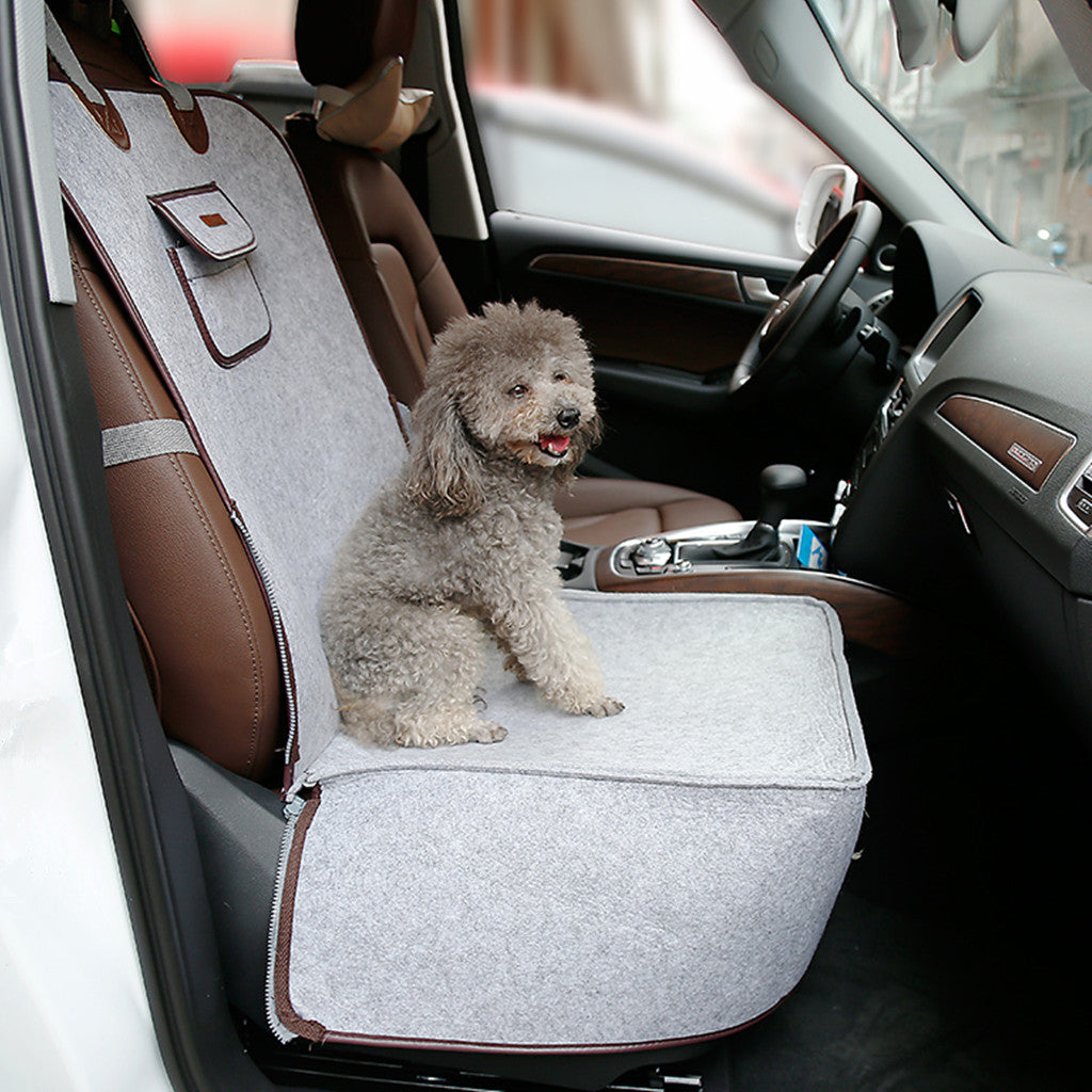 A little pocket on fromt of the front seat cover, can be used to carry some pet toys or pet leash.