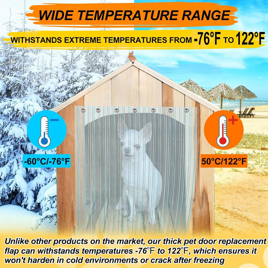 - 【Safe and Odorless】: Doggie Door Flaps made of PVC are safe and odorless. They remain weatherproof, sturdy, and not prone to deform or damage. Get peace of mind with a safe and reliable solution for your pet.