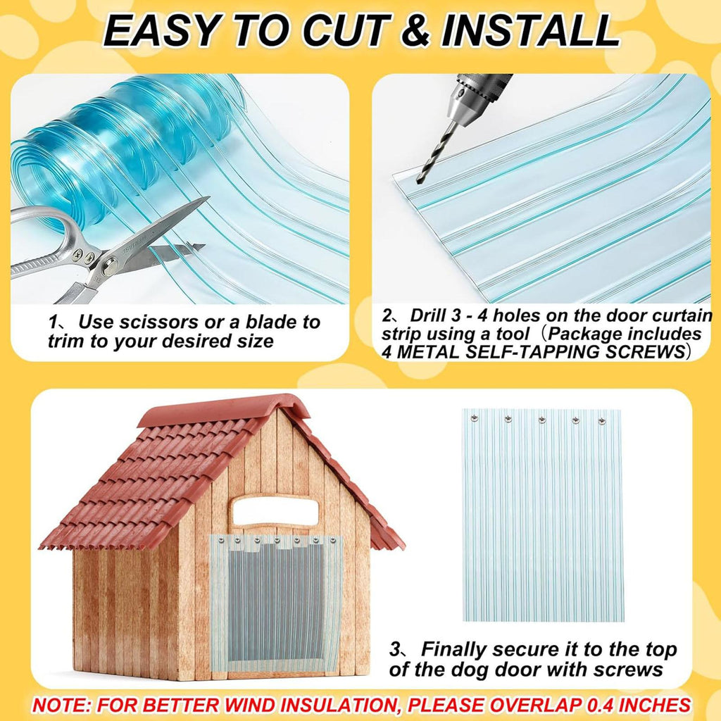 - 【Efficient Installation】: Reduce your pet's discomfort with our easy to install Dog Door Flap Replacement. The overlapping design on both sides of the door enhances insulation. Measure, cut, drill 2-3 holes, and mount with screws(not included) for better heat insulation, hassleless replacement, and a snug fit.