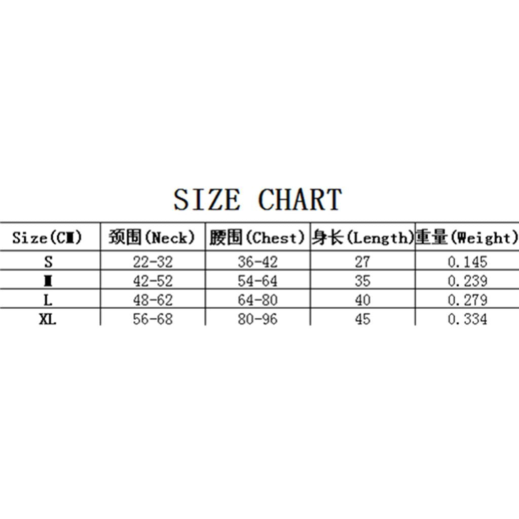 Size L: Neck: 48-62cm/18.9-24.4inch; Chest: 64-80cm/25.2-31.5inch; Length: 40cm/15.7inch